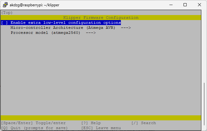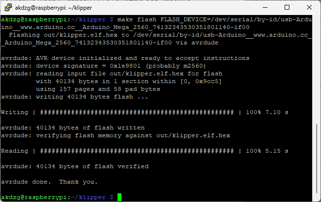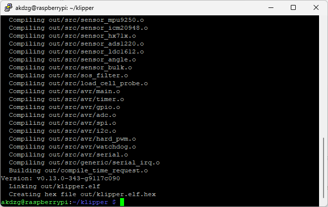 В результате будет создан файл прошивки ~/klipper/out/klipper.elf.hex