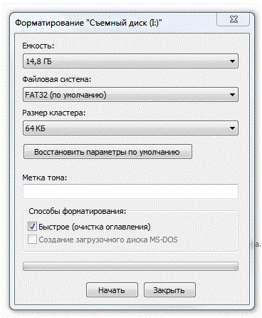 Я фориматировал в FAT 64кб, а не в FAT32 64кб
