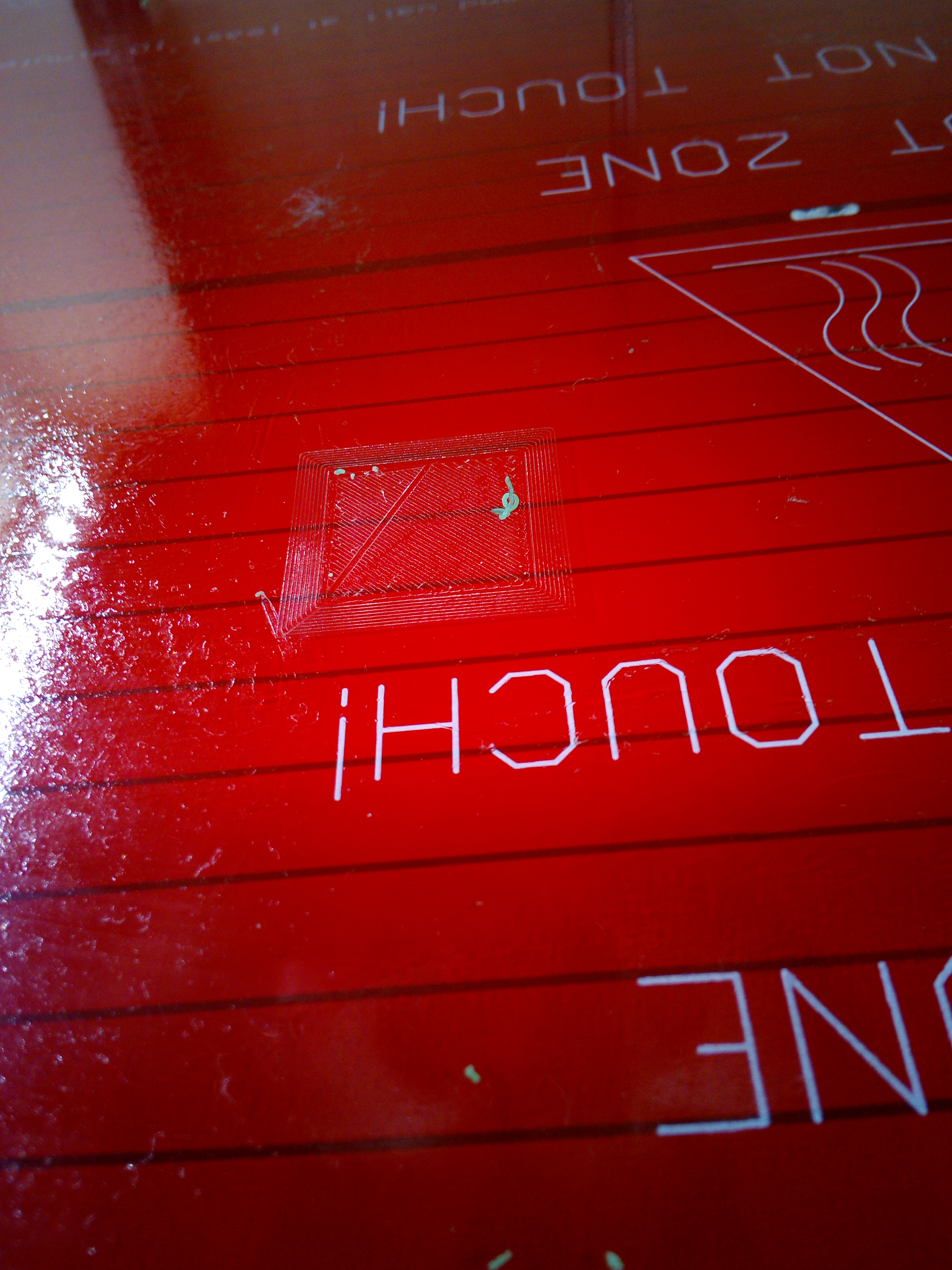 Опустите немного стол крутилками, Зазор есть, по крайней мере кайму печатает хорошо. Но почему-то прекращается подача на слоях детали. Печать кубика и Г-кода остановил, когда голова почти на 1 см выше стола была (фото выше). Могу попробовать 0 по Z чуть опустить, посмотреть как выплавлять будет. А ...