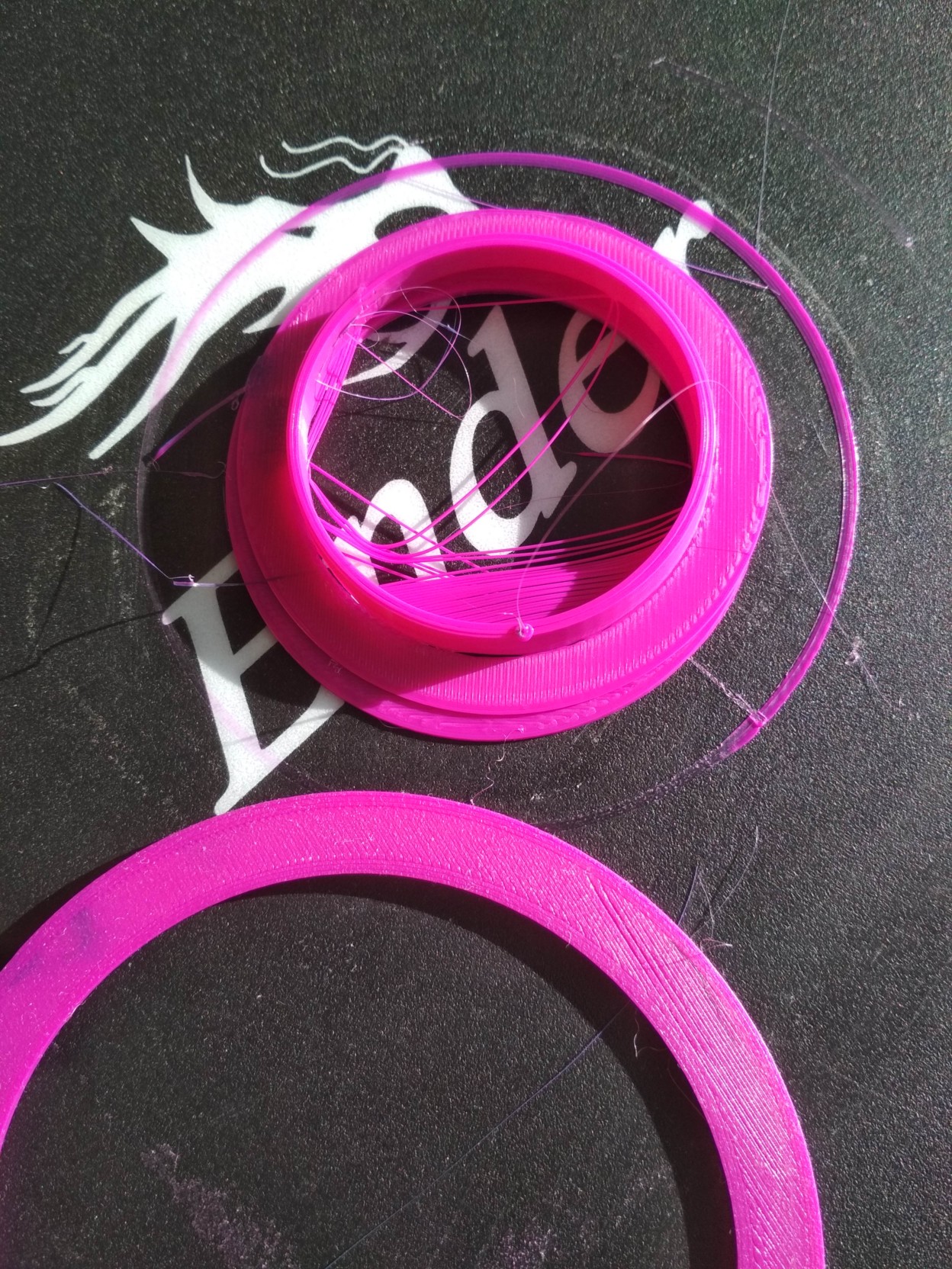 С адгезией вы мне очень помогли! Спасибо всем. Конечно, у меня филамент просто стекался, без "вдавливания". Подскажите, почему такое отслоение? И еще... зачем вообще нужны "круги", т.е. стенки? Иногда ведь достаточны "грубые" поверхности.. на фото.... меня бы устроило только продольное движение сопл...
