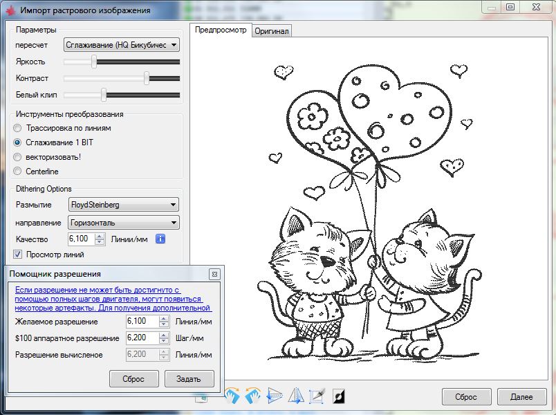 Видим , что картинка 60мм на 80мм (на экране есть шкала в мм снизу и слева предпоказа области печати). Время печати составило 23 минуты.