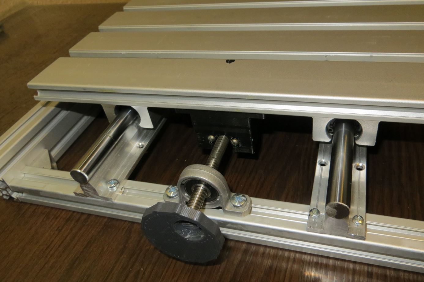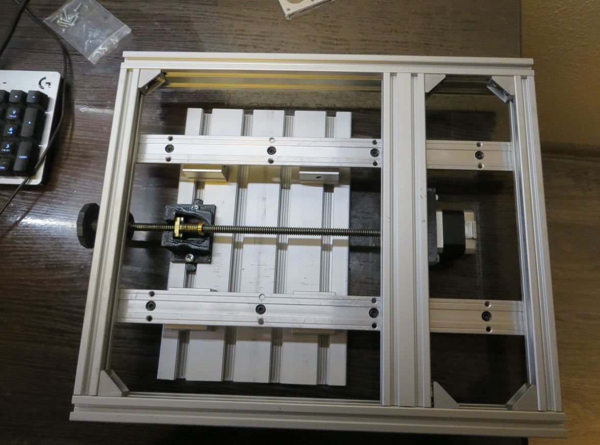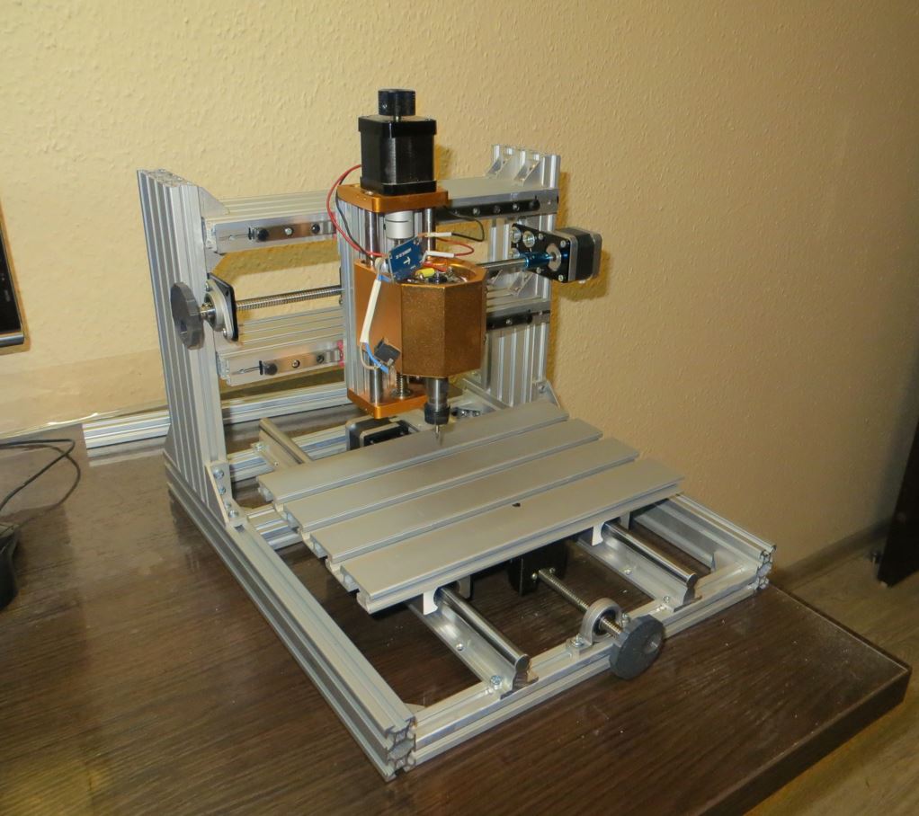 Зона фрезеровки фрезера - 210 мм на 180 мм, высота 50 мм, но может быть расширена. Рама 300 мм на 40 мм.... Тип - с подвижным столом - "Дрыгостол". Увеличивать размеры смысла нет - время фрезеровки плат - несколько часов для максимального размера..... Маленькую плату около часа фрезерует.