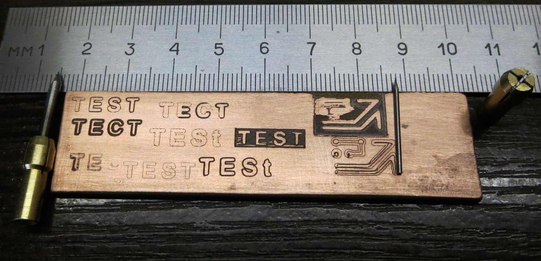 Вот пока фрезы идут заточил сломанное сверло под конус - ну достаточно много времени потратил ..... Потренироваться....Пока разобрался как это всё работает - три раза перетачивал.....Так как либо щупы подцепить забывал, либо неправильно команды давал - короче портил заточку.... Но вот попробовал фольгированный стеклотекстолит програвировать - фрезу выставил как 0,2 мм, а глубины пробовал - ,0,2 мм, 0,15 мм и 0,1 мм. 0,1 -не берёт, 0,2 как бы глубоко уже.... 0,15 нестабильно с этой фрезой работает....