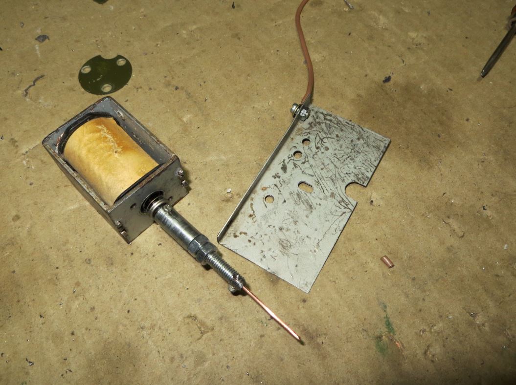 Тут электромагнит с сердечником и искровой элемент закреплен на пластинке пружинке - которая примагничивается к сердечнику электромагнита