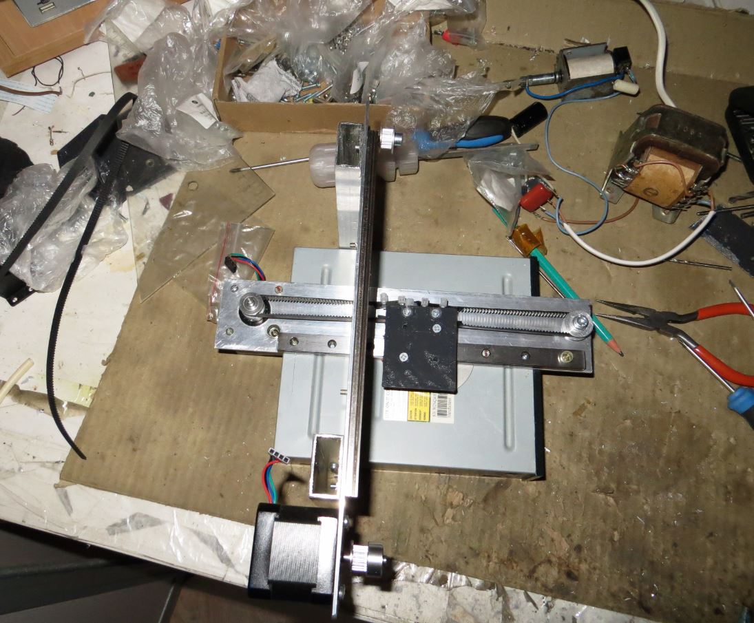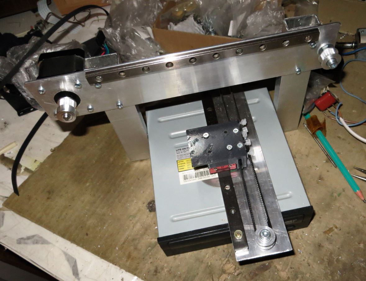 Начал пилить ЧПУ из корпуса ДВД на линейных рельсах на ремнях.