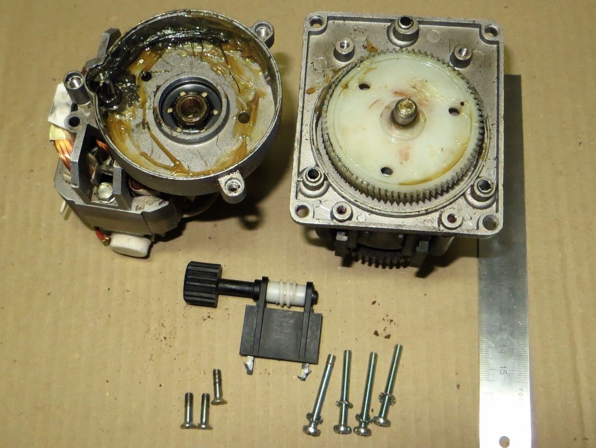 Разобрал, на роторе двигателя один проводок отвалился от механического повреждения - ротор не бронирован. Припаял его на место. Всё смазал.