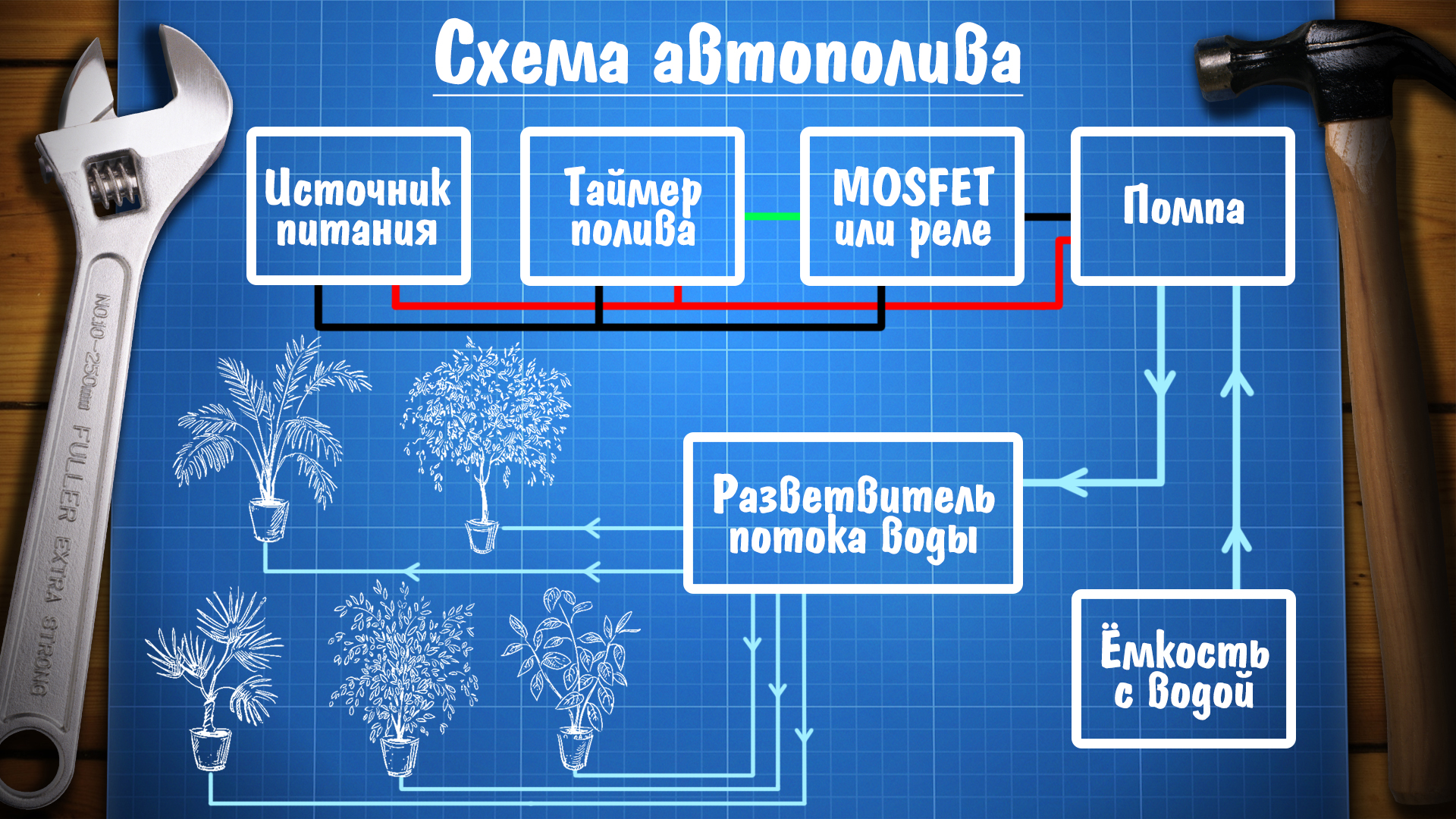 Суть проекта - Digispark - процессор под Ардуино - ATtiny85 управляет ключом на мосфете - тот включает водяной насос для полива. Программируется время между поливами и время работы насоса. Просто раз в сутки (или раз в двое суток, или хоть через несколько секунд) включается насос на 20 секунд(ну или сколько выставите), потом выключается. Ни каких датчиков и других кнопок нет.