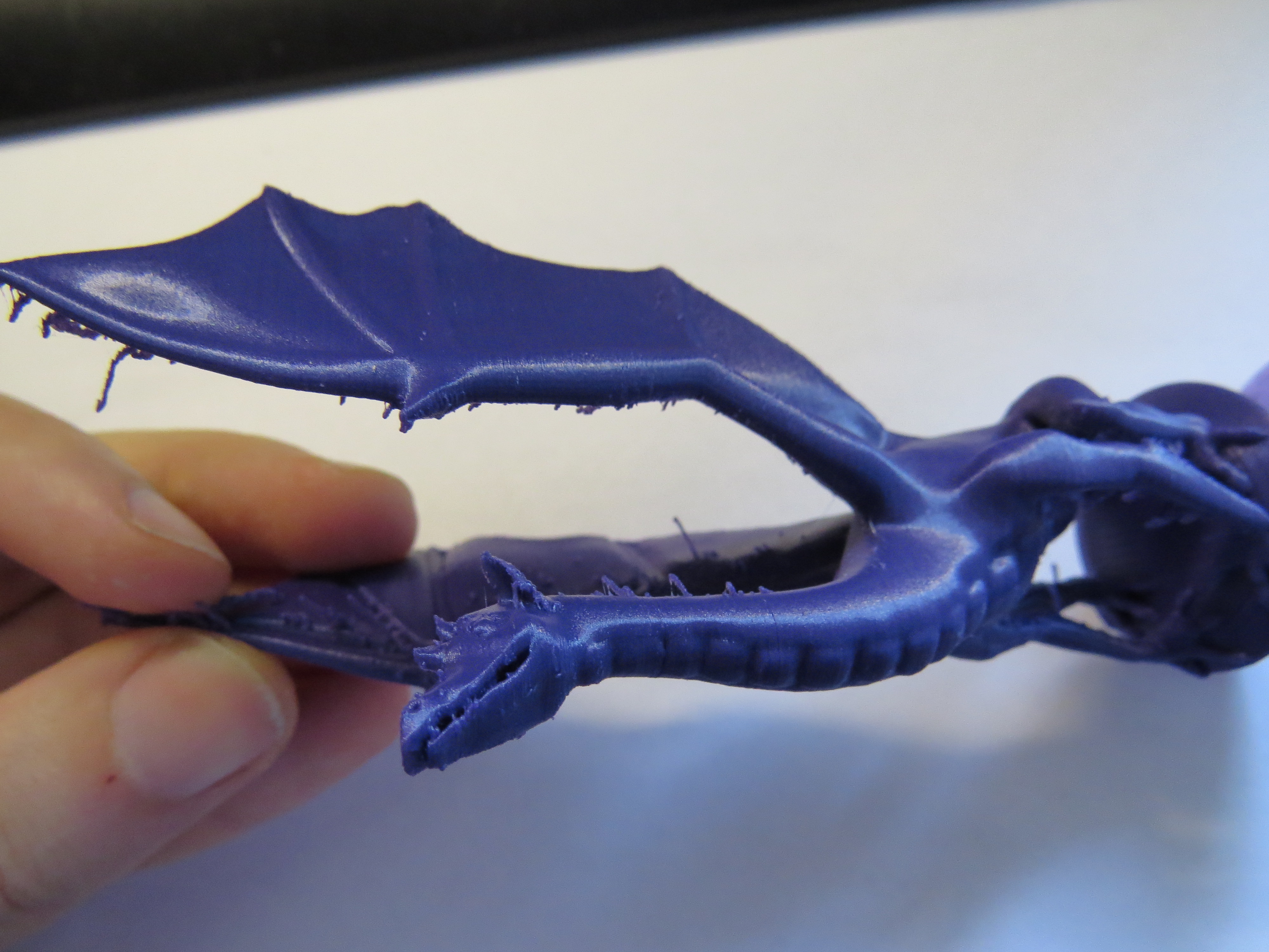 Так же предпринял попытку распечатать дракона. Каждый раз его срывало с платформы. Возможно подачи пластика многовато, возможно дело в том что это АБС, переставил на ПЛА - критичные слои распечатались, но сопло стало чиркать на более высоких слоях в итоге два почти готовых дракона сорвало и только третий получился.