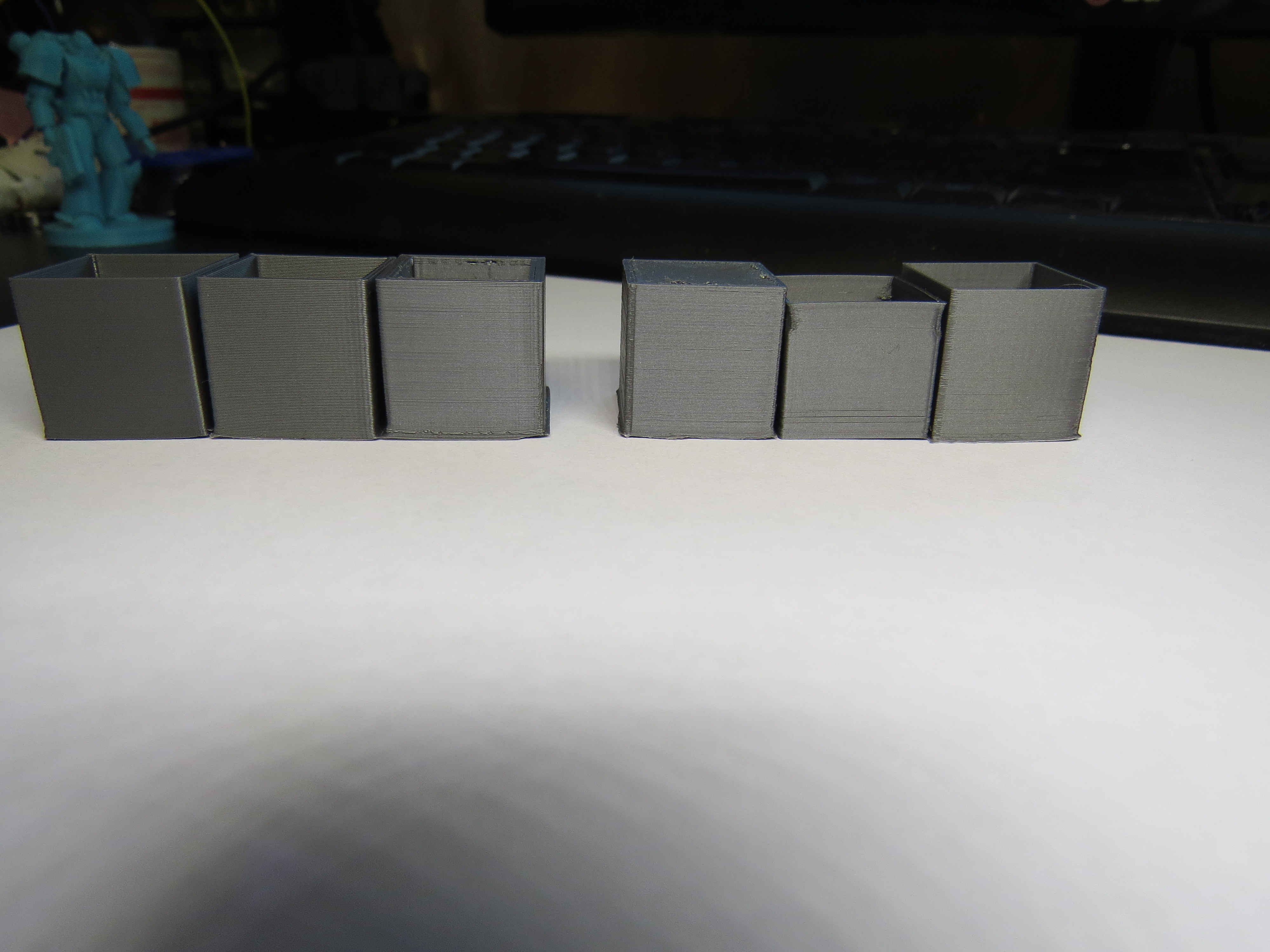 Предыдущие тестовые кубики с самого начала этой ветки печатались одним и тем же соплом. Изначально оно давало нить 0.35, а сейчас обнаружил что нить уже 0.5 так что сопло заменил на 0.25