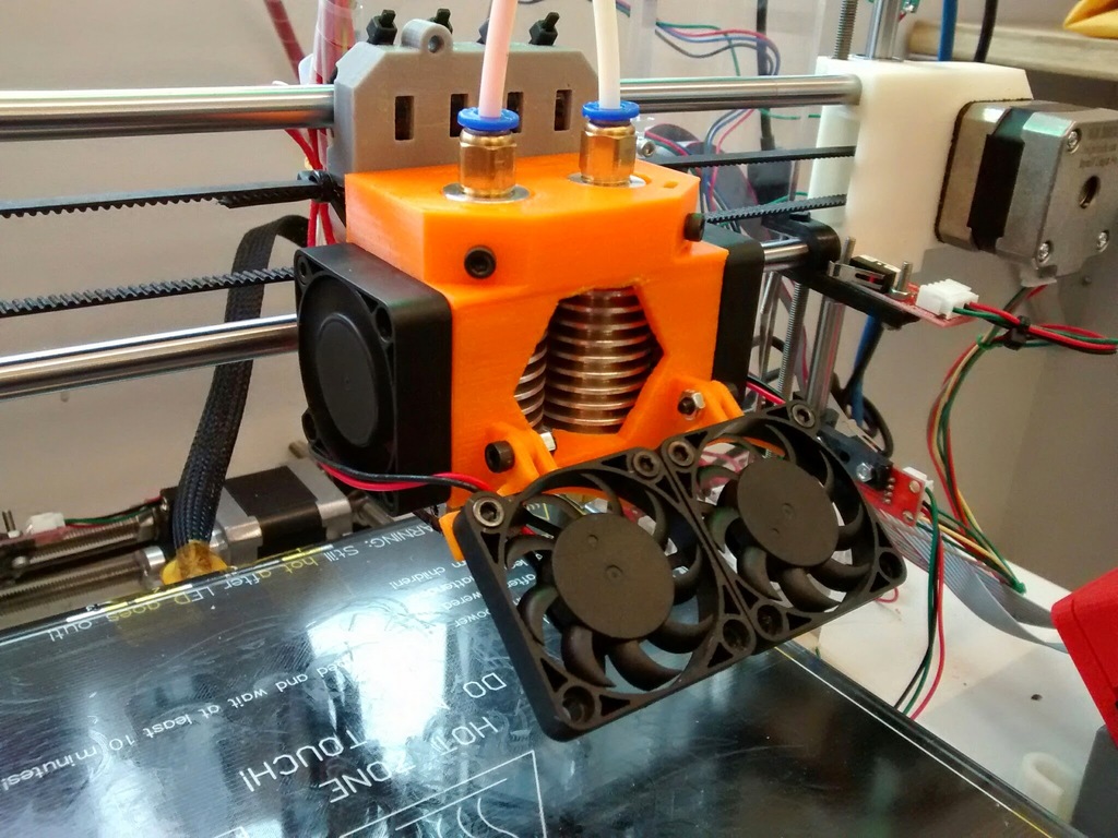 3D-SPrinter писал(а): А два обычных E3D v6 никто не хочет поставить? Есть у меня несколько вариантов самодельных радиаторов под 2 хотенда, но всё это не технологично и не оптимально. Надо бы разработать крепление обычных хотендов с регулировкой по высоте и обдув. Чтобы все желающие могли легко заказать пару стандартных хотендов, напечатать крепление и обдув и модернизировать свой СПринтер в двухголовый.