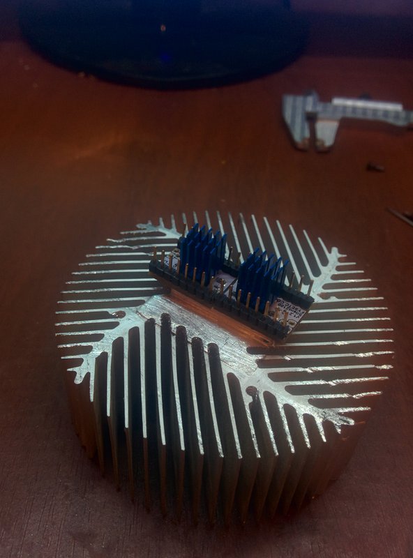 Ноги выпаивать побоялся, перегрею еще, дорожки отвалятся или чип пожгу. Перестраховался. Радиатор понимаю, что избыточен, но такой в наличии имелся и места для него в принтере достаточно. Что бы уж наверняка. Больше переживал за длинные провода, но если не помеха, то чудно, успокоили. А вот воткнуть движки прямо в драйвер я что то и не догадался, спасибо за подсказку, буду подумать