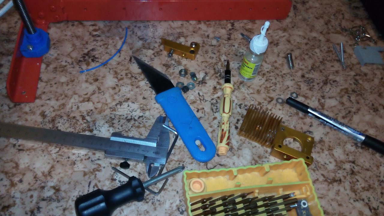 Ни с того ни с сего - во время печати сразу нескольких (а точнее 5 шт ) одинаковых заготовок - произошёл сбой. Намотало волосни, но вовремя увидел. После этого тщетно пытаясь прогревом сопла выдавить затор - пришёл к выводу, что пора почистить.