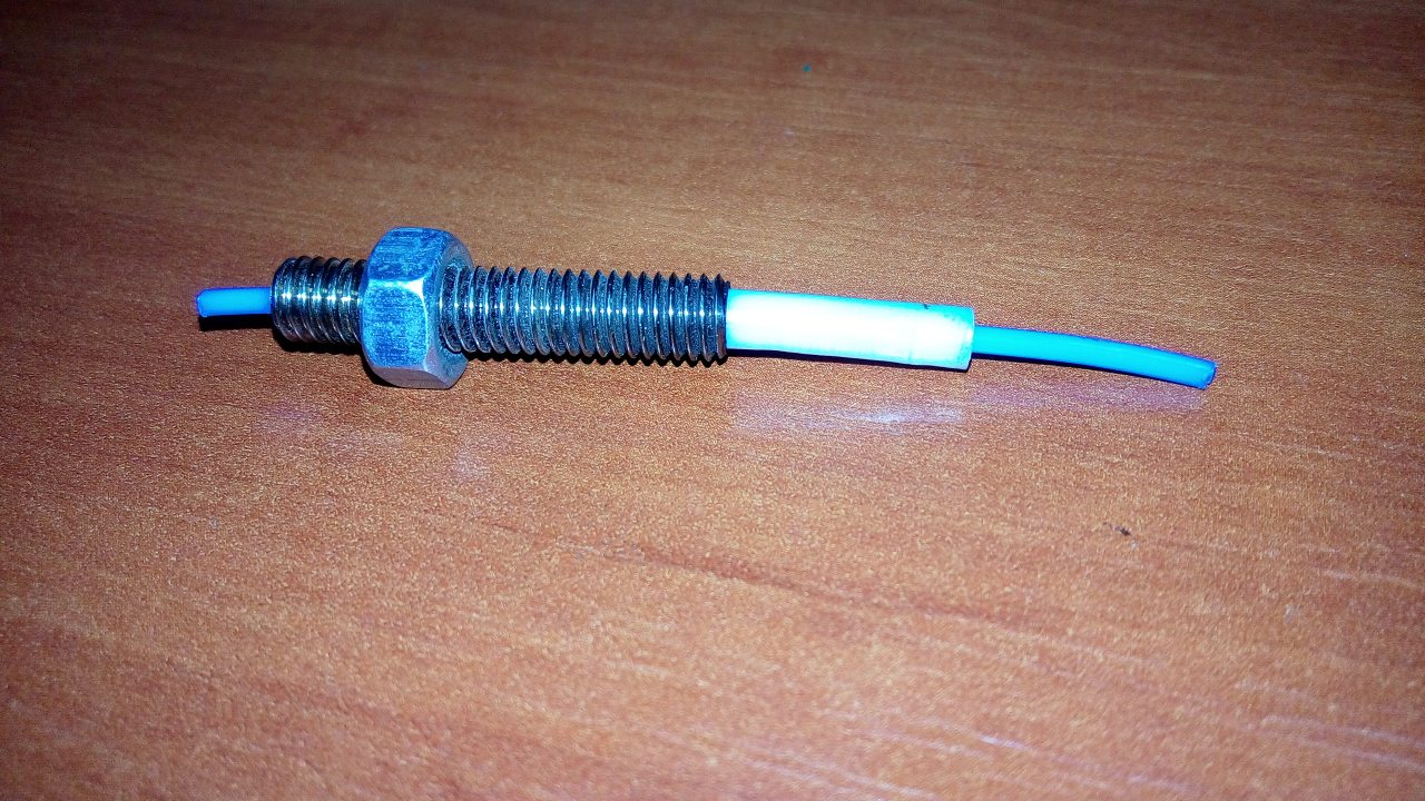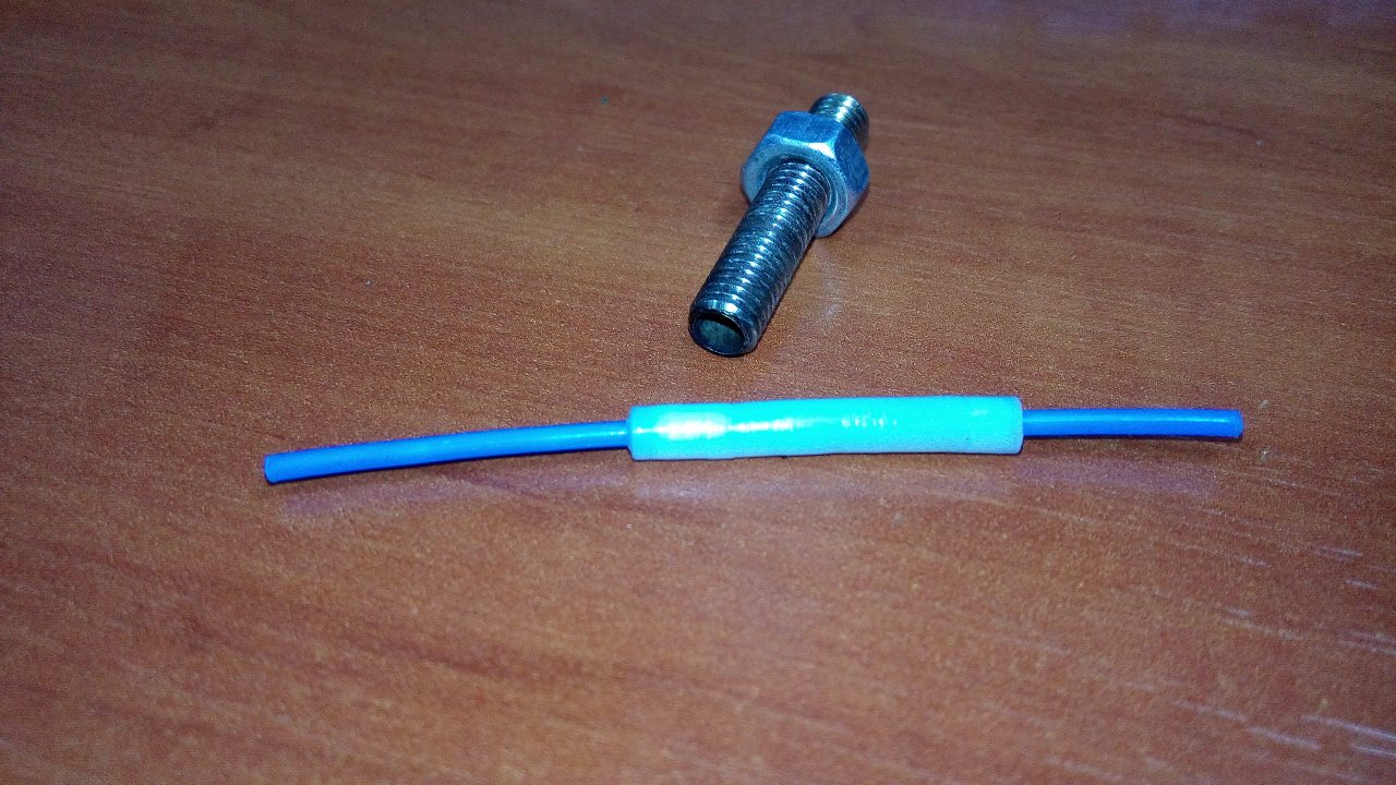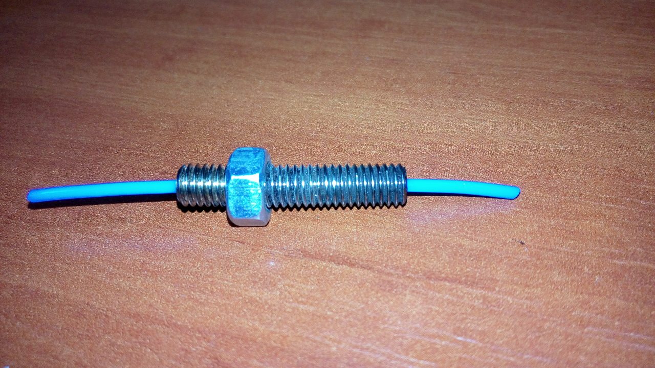 Пластиковая втулочка как видно на фото похоже просела со временем. И плотно садится на пруток филамента. Пассатижами то протащить можно, но я боюсь, что это слишком плотно, даже для холодного протягивания. Возможно нагрев даст некоторую свободу. Но похоже уже есть задиры внутри.
