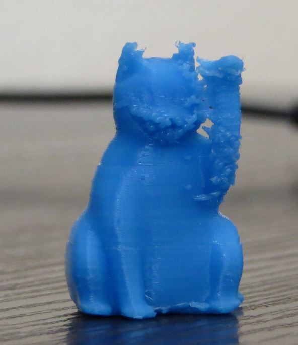 Увеличил откат прутка чуть чуть и решил напечатать кошку по более в размерах - 40% от модели по всем осям .