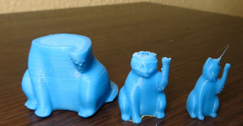 Установил программу CURA - настроил. Напечатал "худую" кошку - (25% по ширине и длине и 35% по высоте). Напечаталась без сбоев, в том числе и без пропусков слоёв.