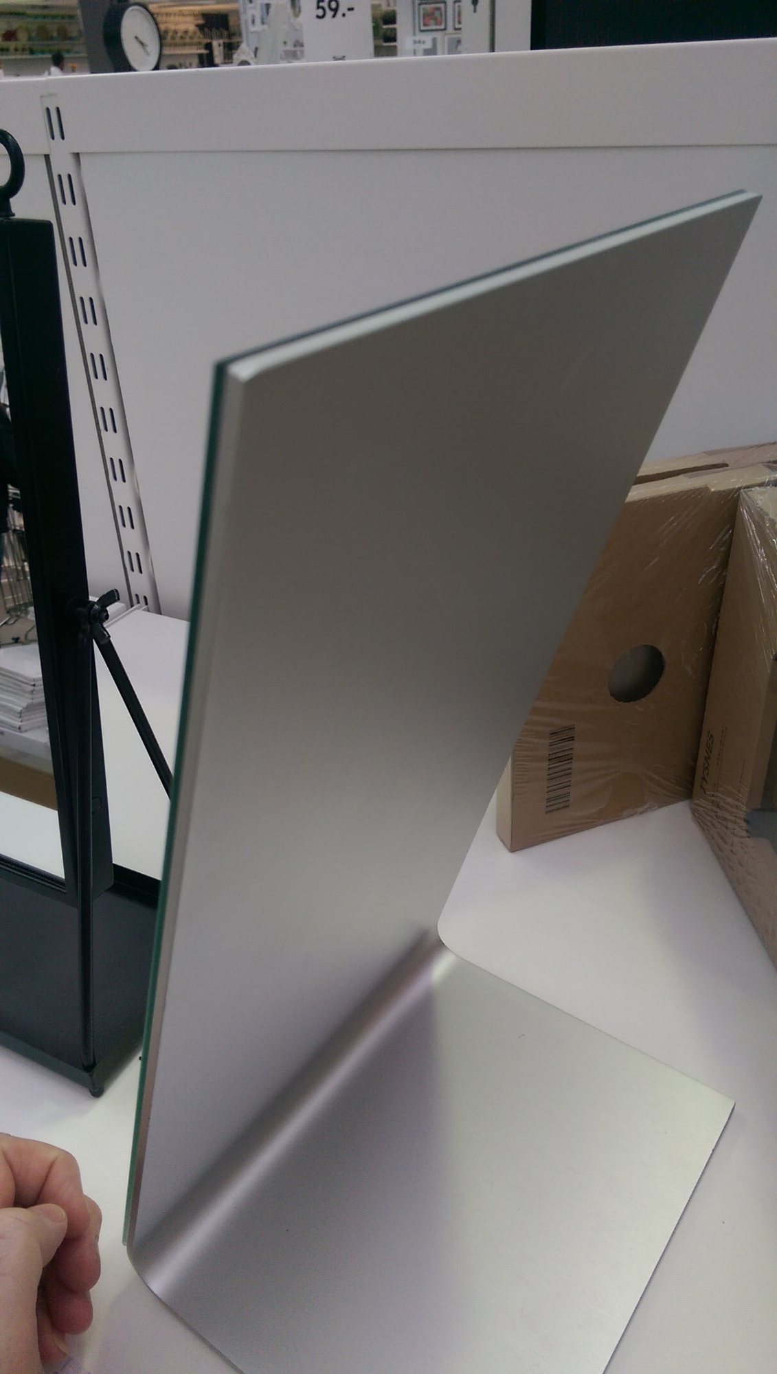 Зато увидел там интересное зеркало на подставке из согнутого листа алюминия.