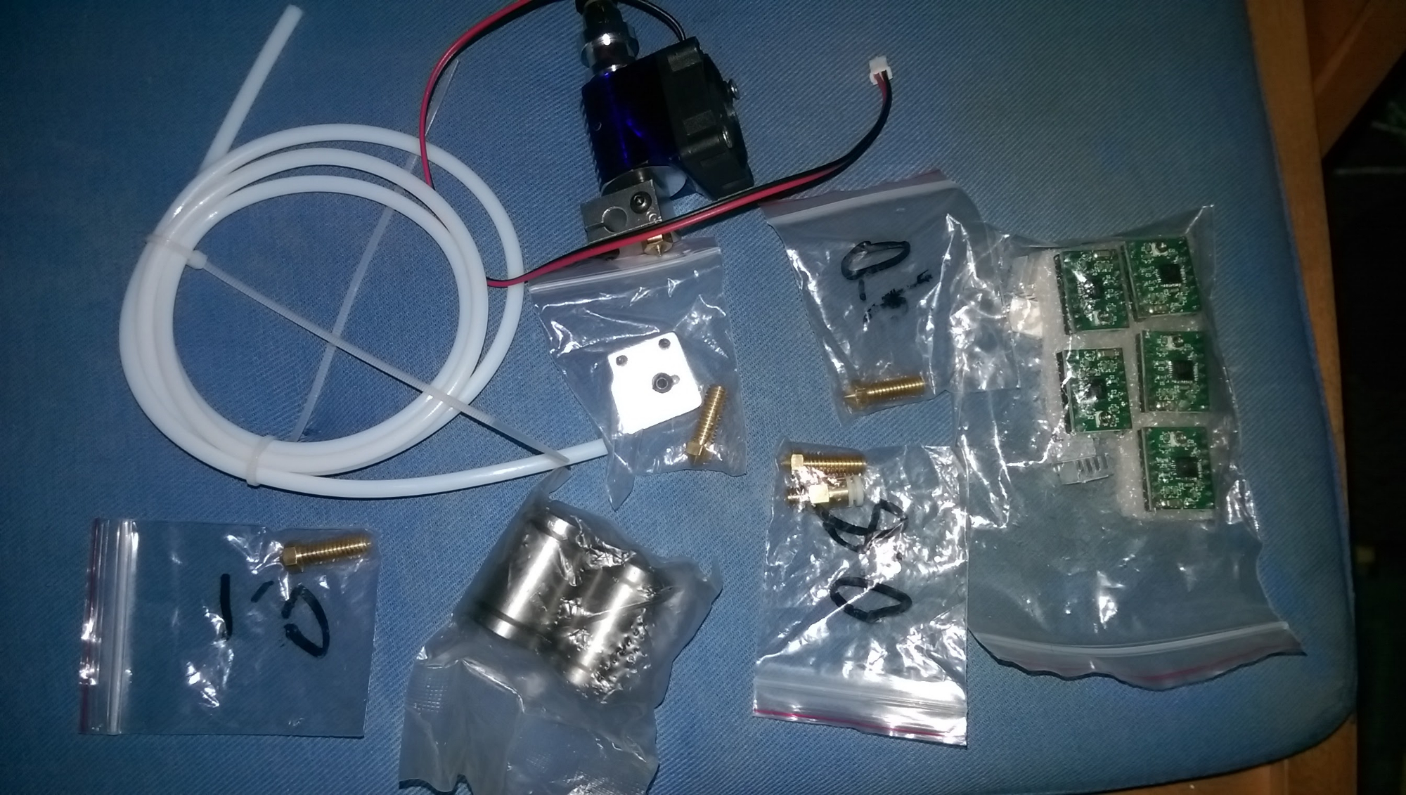 Вот хотенд, в комплекте с блоком Volcano и соплами для него. Так же прибыли линейные подшипники (LME12UU). В комплекте к RAMPS драйвера А4988 (отдельно еще идут DRV8825).