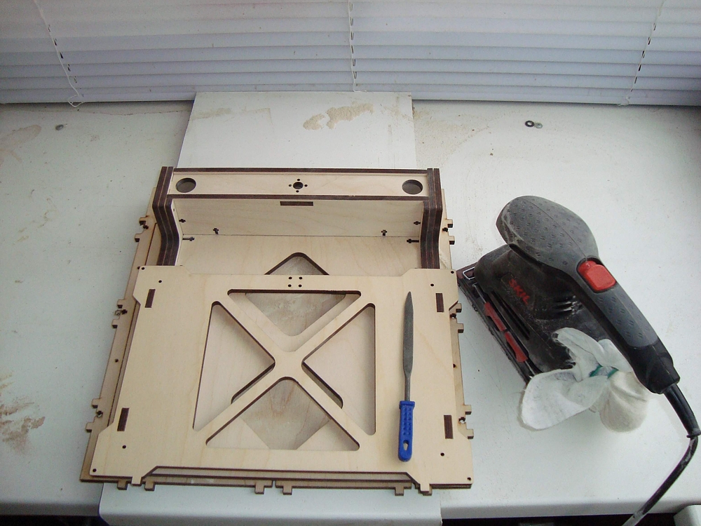 Как и было обещано Андреем - получил корпус, нарезанный из 6мм фанеры. Как и было обещано Андреем - корпус собрался за 5 минут весь.