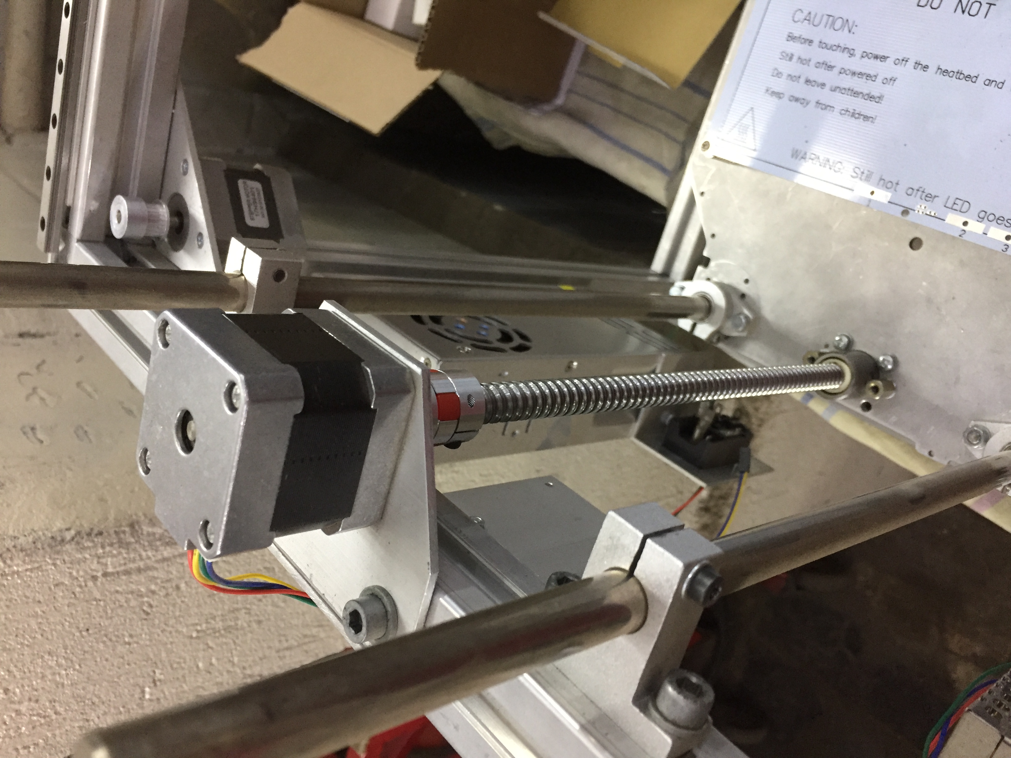 Дело в том что сейчас рама стола крепится к каждой направляющей одним болтом, и ее перекосило, из-за этого нельзя правильно отцентрировать и зажать гайку трапеции - что в свою очередь вызывает воблинг.