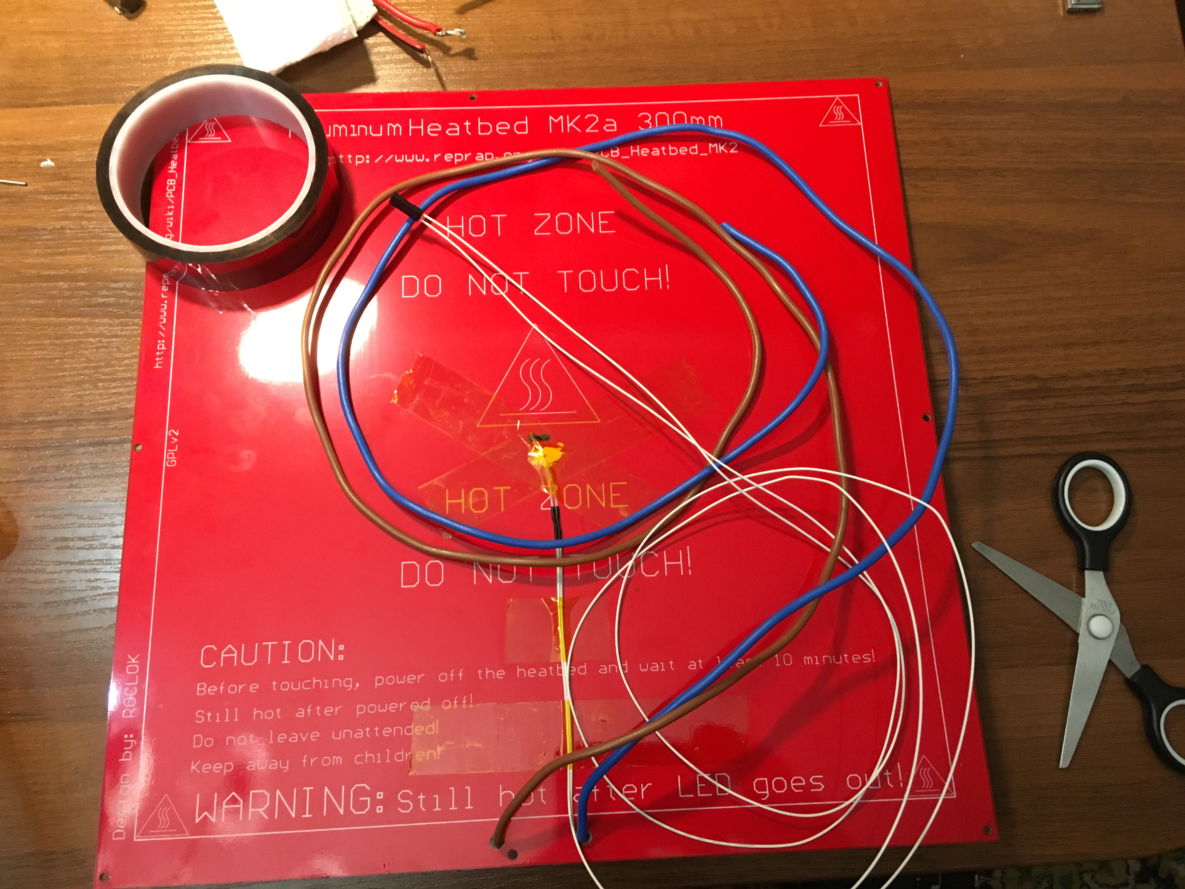 Припаиваем провода, выковыренные из ПВС 2х2.5мм2 и приклеиваем термодатчик