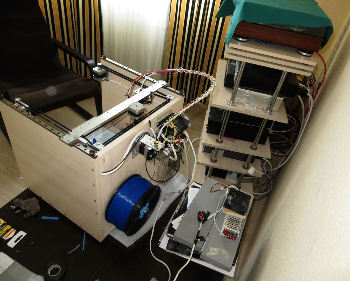 Он печатает и подогревающий столик работает(только блок питания для столика греется тоже сильно, что мне не нравится), осталось только режимы подобрать для АБС. Хотя и ПЛА есть пол катушки. Всегда могу пока напечатать и ПЛА. ПЛА у меня печатает удовлетворительно. Но печатает. Только поддержки надо правильно выставлять. А пока придёт "грелка" и АБС отлажу. Сейчас всё уже подключено и работает. Надо только, чтобы желание появилось дальше делать. Сейчас у нас жара и как-то ничего делать неохота. И кроме принтера сейчас развлечений на природе полно.
