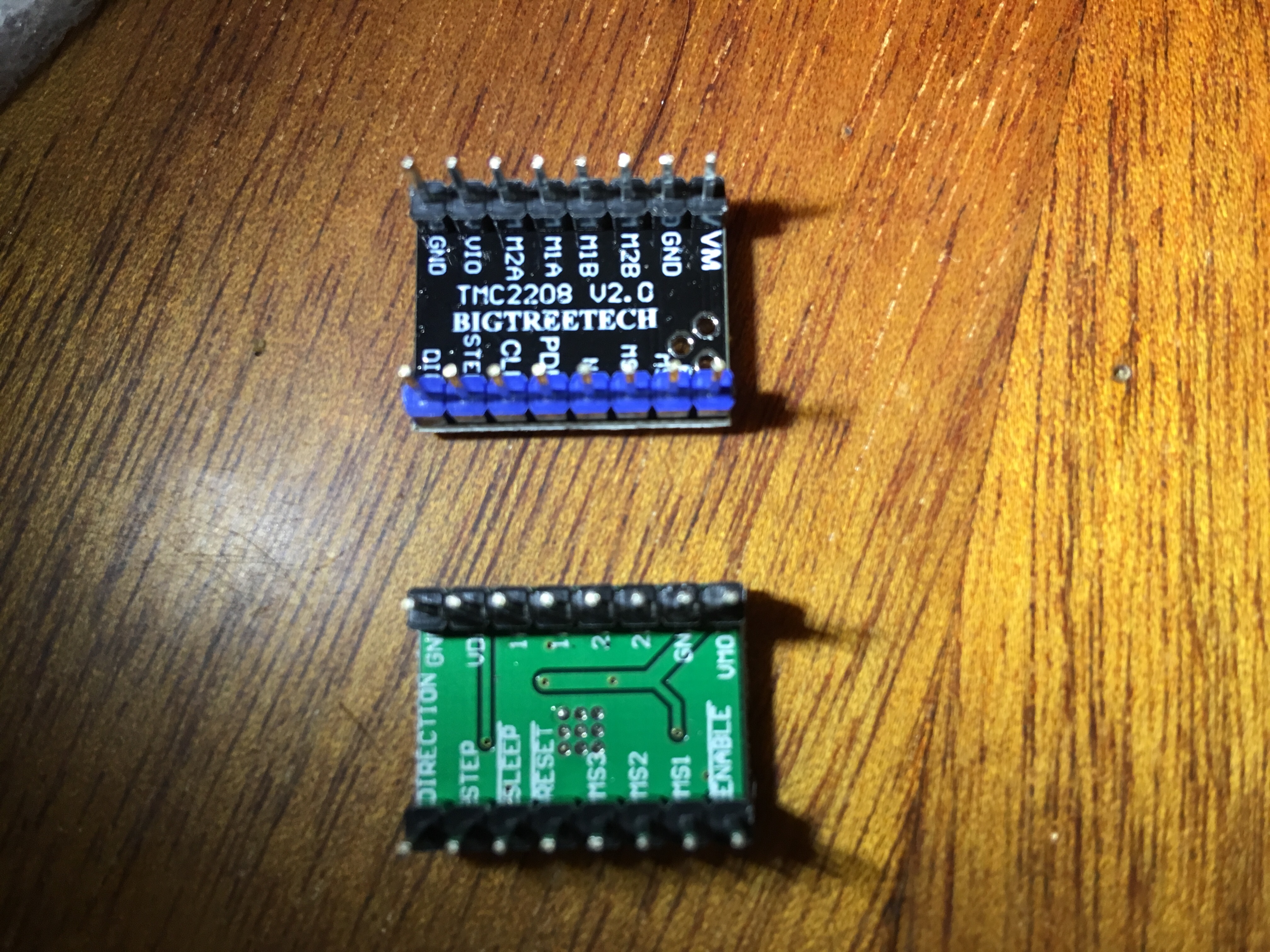 Тут еще вот какое дело. Эти драйвера, которые микросхемой вверх, у них распиновка мотора не как у A4988. Я оставил моторы, подключенные по старой схеме