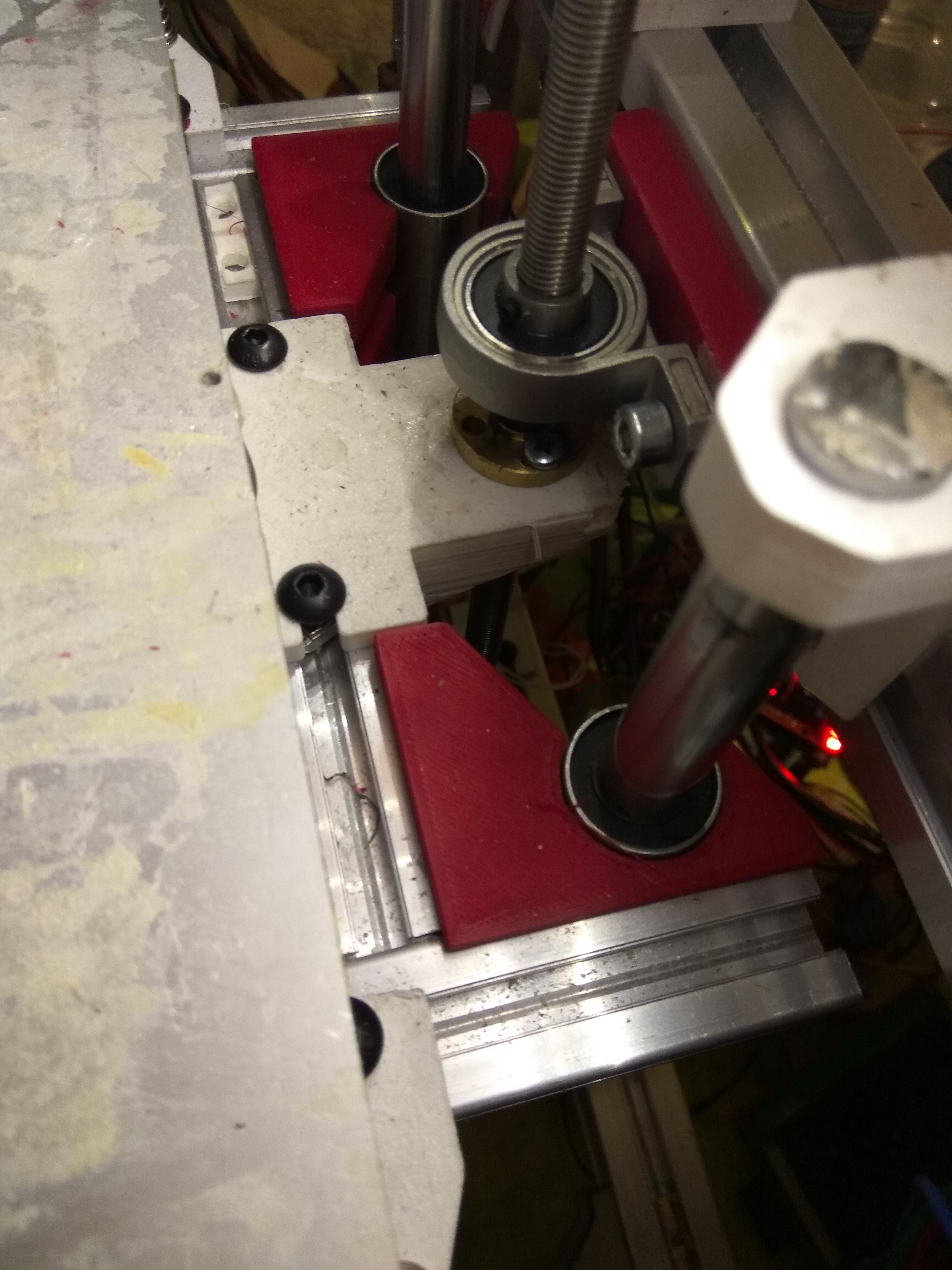 Главная цель - заставить гайку трапеции ходить ровно, без болтанки. Первым делом установил торцевой подшипник для верхнего конца трапеции.