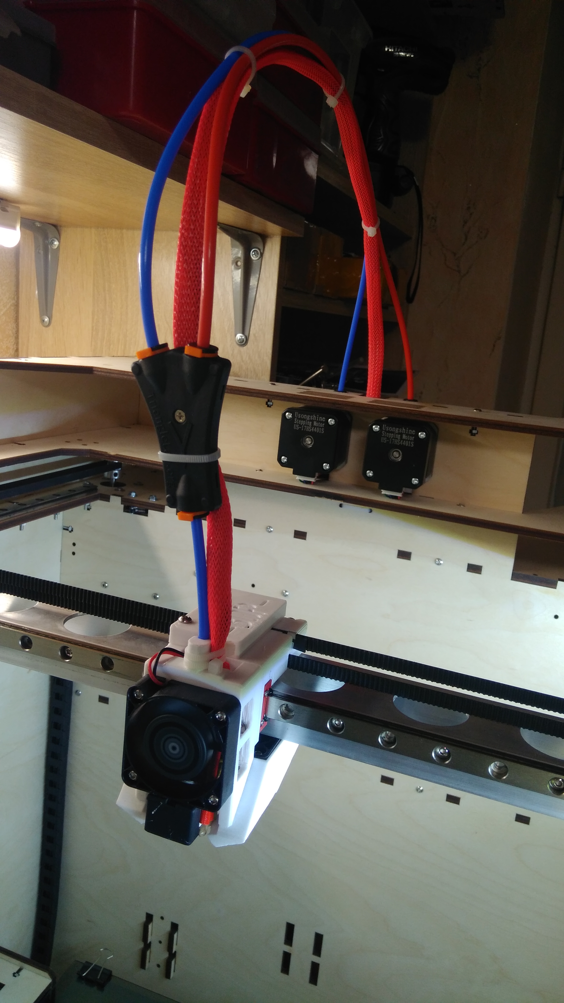 принт собран, обкатан, дня три потрачено на прошивку и настройку печати. пока печать соплами 0.8 и 1мм, результаты выложу позже. вопрос есть - как настроить Y переходник на марлине вообще? указывать что экструдера и второй хотенд будет виртуальным? или парралелить на него термистр рабочего? непонятно. и еще настройка отката нити чтоб две нити не пересекались в переходнике?