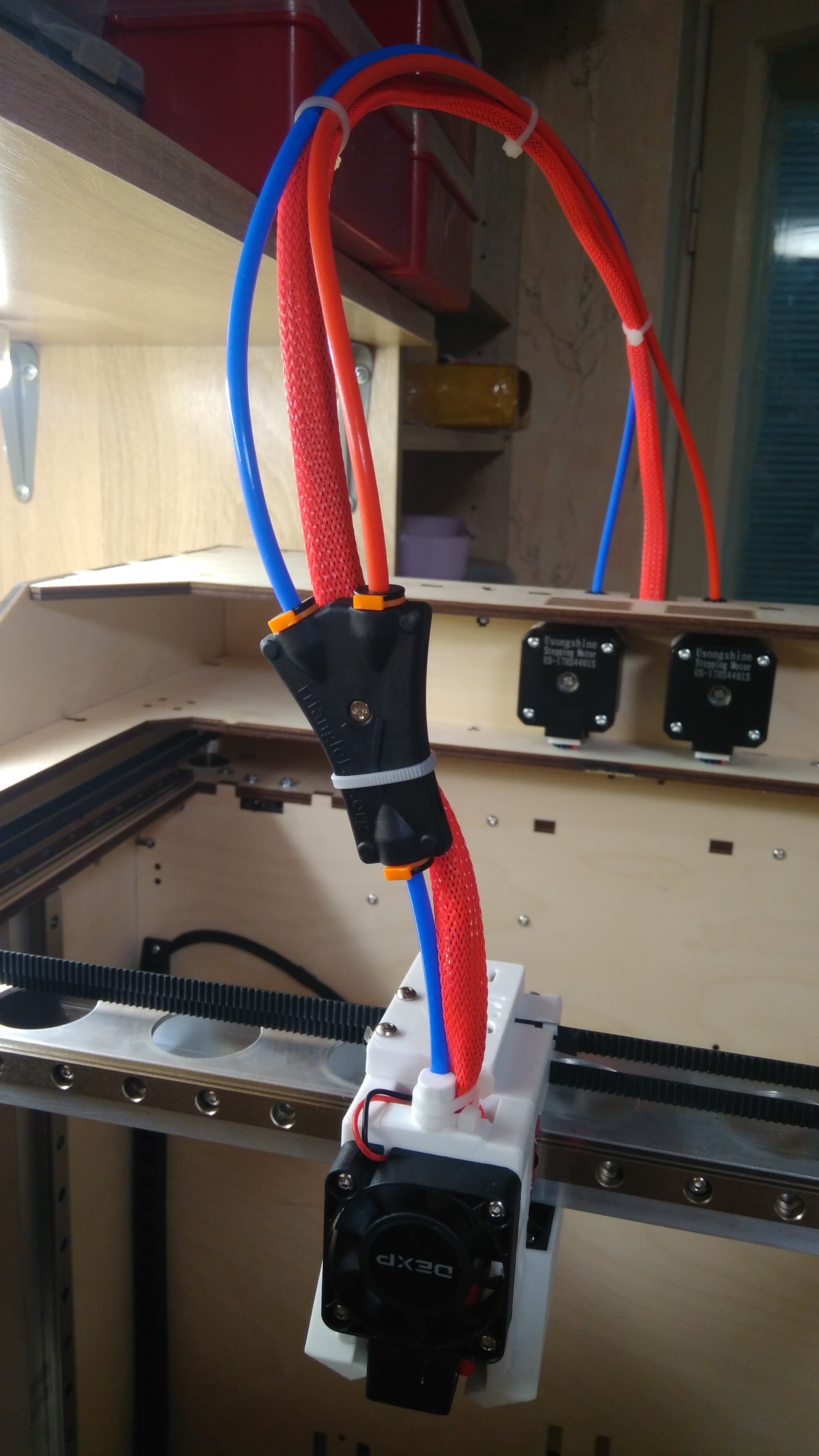 ИМХО Y переходник это самая голимая реализация двуцветной печати из всех. Пригодна чисто на "поиграться". Если уж охота двумя цветами в одно сопло печатать - то купить diamond, заглушить в нем один "податчик" болтиком М6 и потренироваться. И то жизнеспособнее вариант, ИМХО.