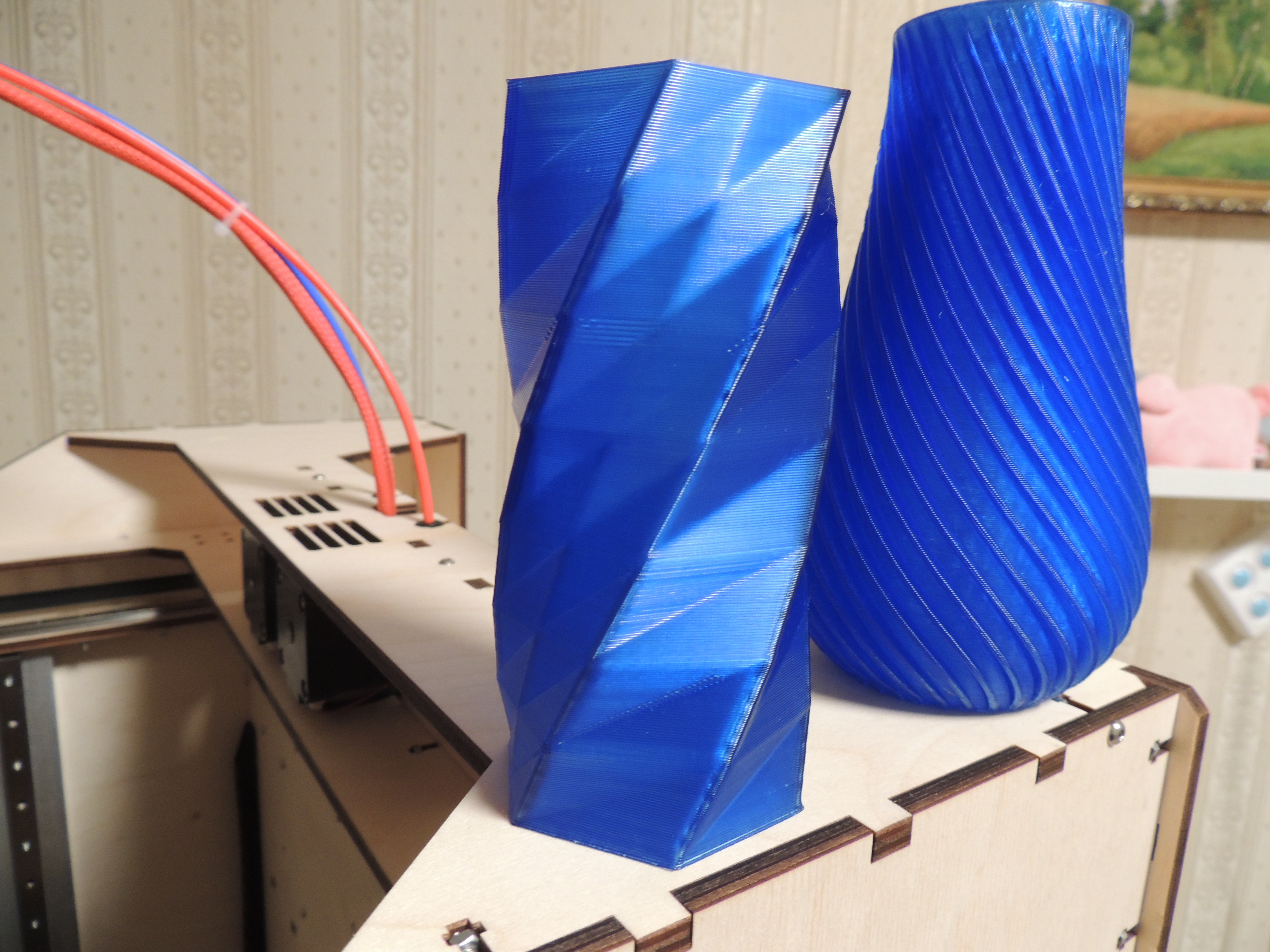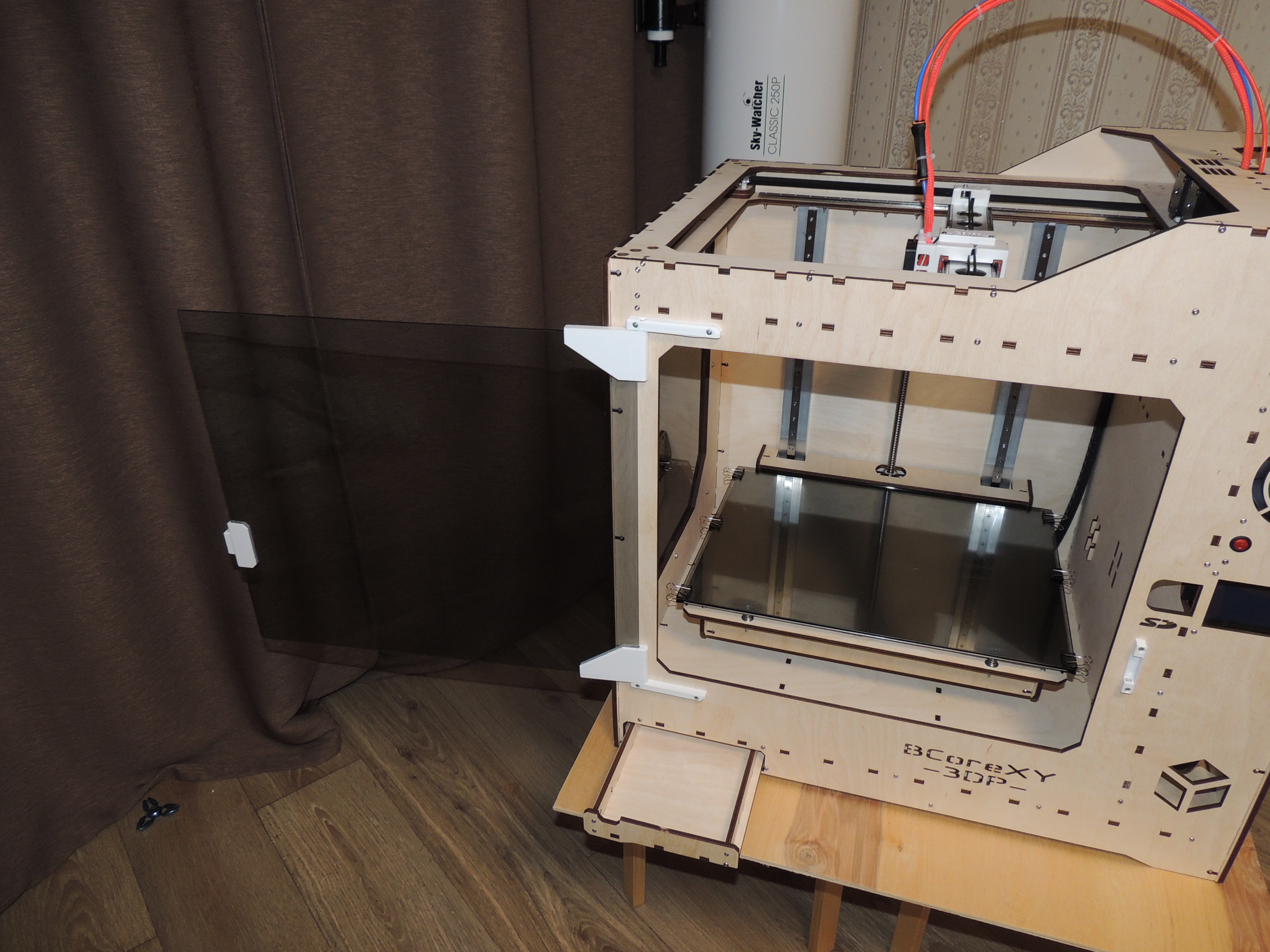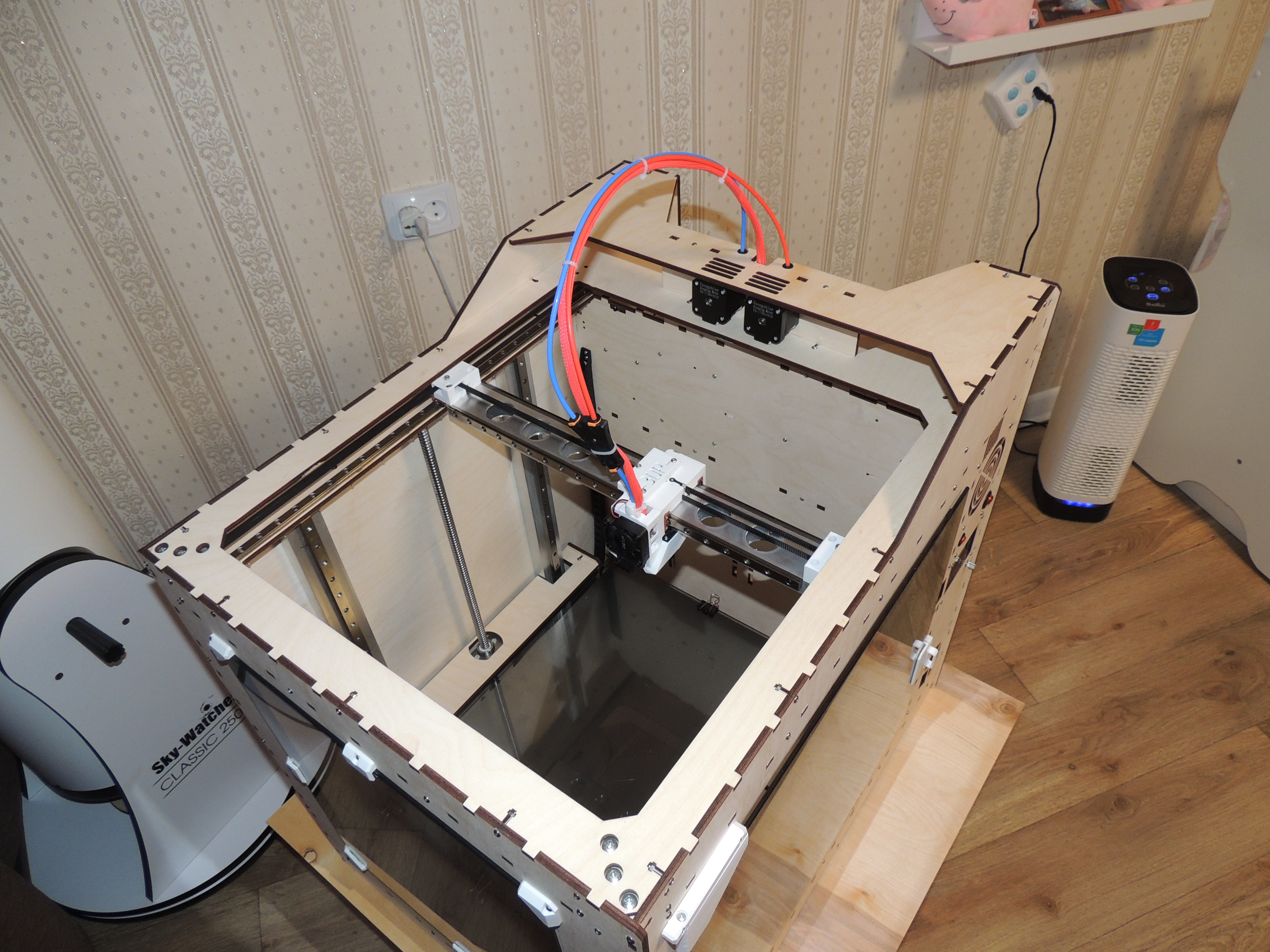 Подытожу. И доволен и недоволен постройкой. Хотя недовольство чисто габаритное. Занимает новый принт очень прилично места, в мастерской это не так критично, а вот в квартире заметно, на фото сравнение с моим обычным ботиком с полем 170*200*280. Из плюсов - больше возможностей для "маневров", это и габаритная тяжелая печать, и возможность установки хорошего обогрева камеры, и по желанию дистанционный обдув детали и СВО хотенда, катушки тоже не торчат. В общем своя, хоть и узкая, но интересная ниша. Про доводки и усовершенствования далее...