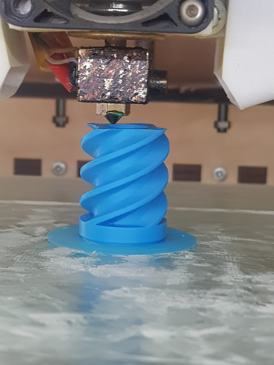 Нагрев стола очень быстрый. 1кВт весчь. Но НО. Стекло для печати 4мм, и оно не успевает так же быстро нагреться как грелка. Приходиться после нагрева ждать еще минут 5-10 пока оно равномерно прогреется (это относиться к АБС, пла и пэтг не столь требовательны и ждать не надо). Поверхность стекла ровная, ни линз ни ям, печать первого слоя ровная по всей площади. Уровень не прыгает, автоуровень не нужен, прогиб я к сожалению не фиксировал на фото, но с помощью индикаторных часов установил - 0,8мм на самом краю при весе в 4 катушки по 1 кг пластика.