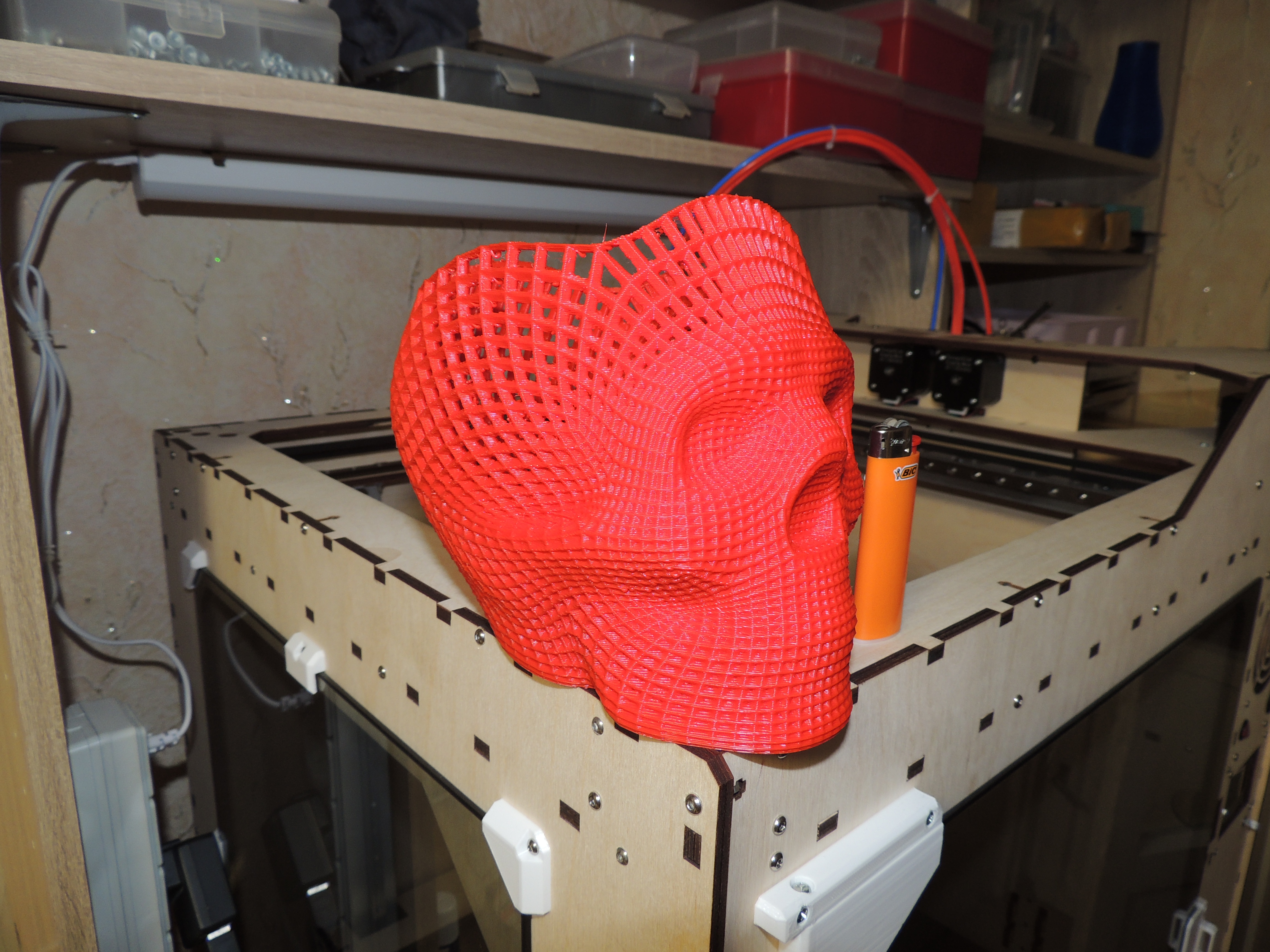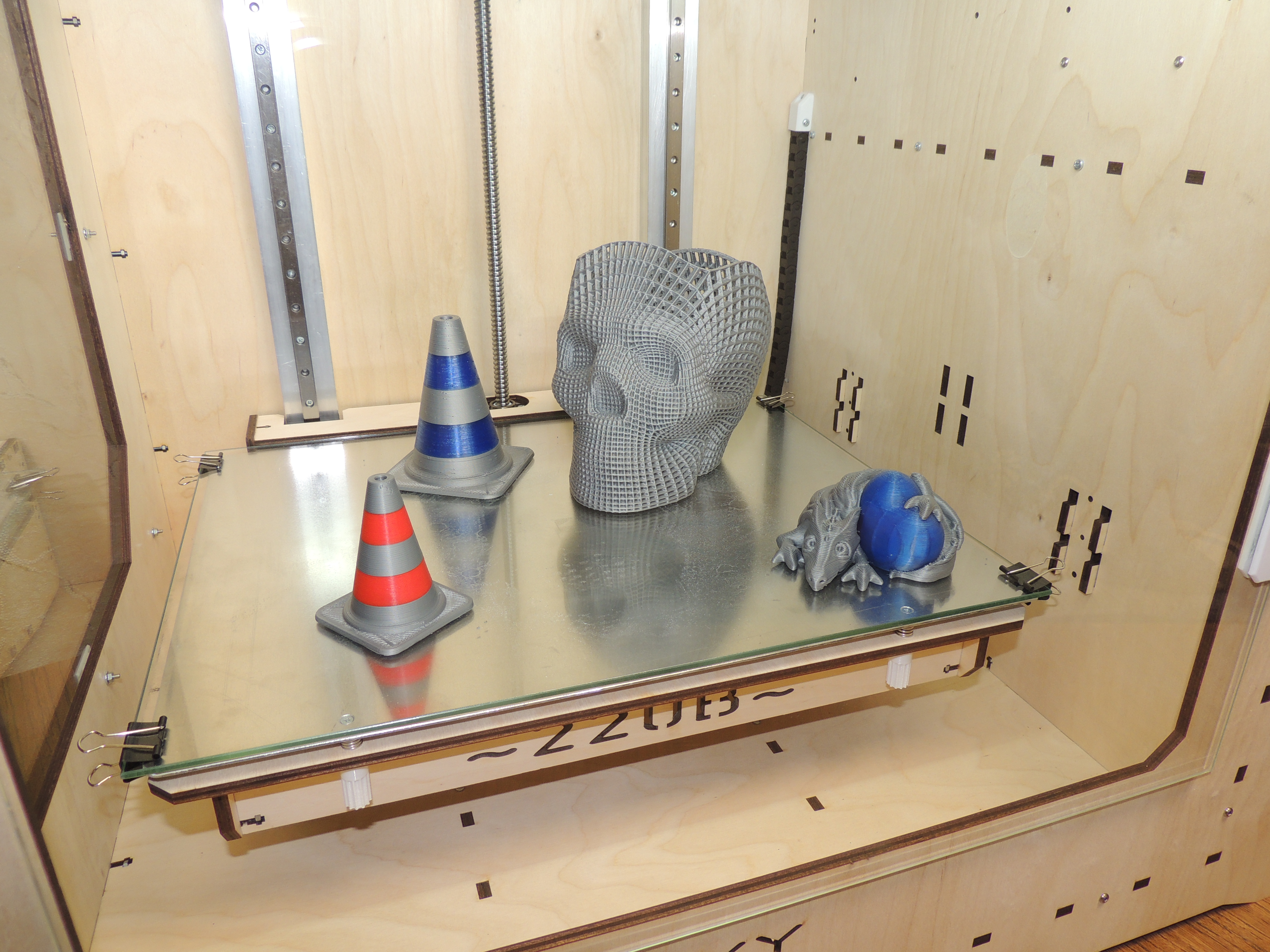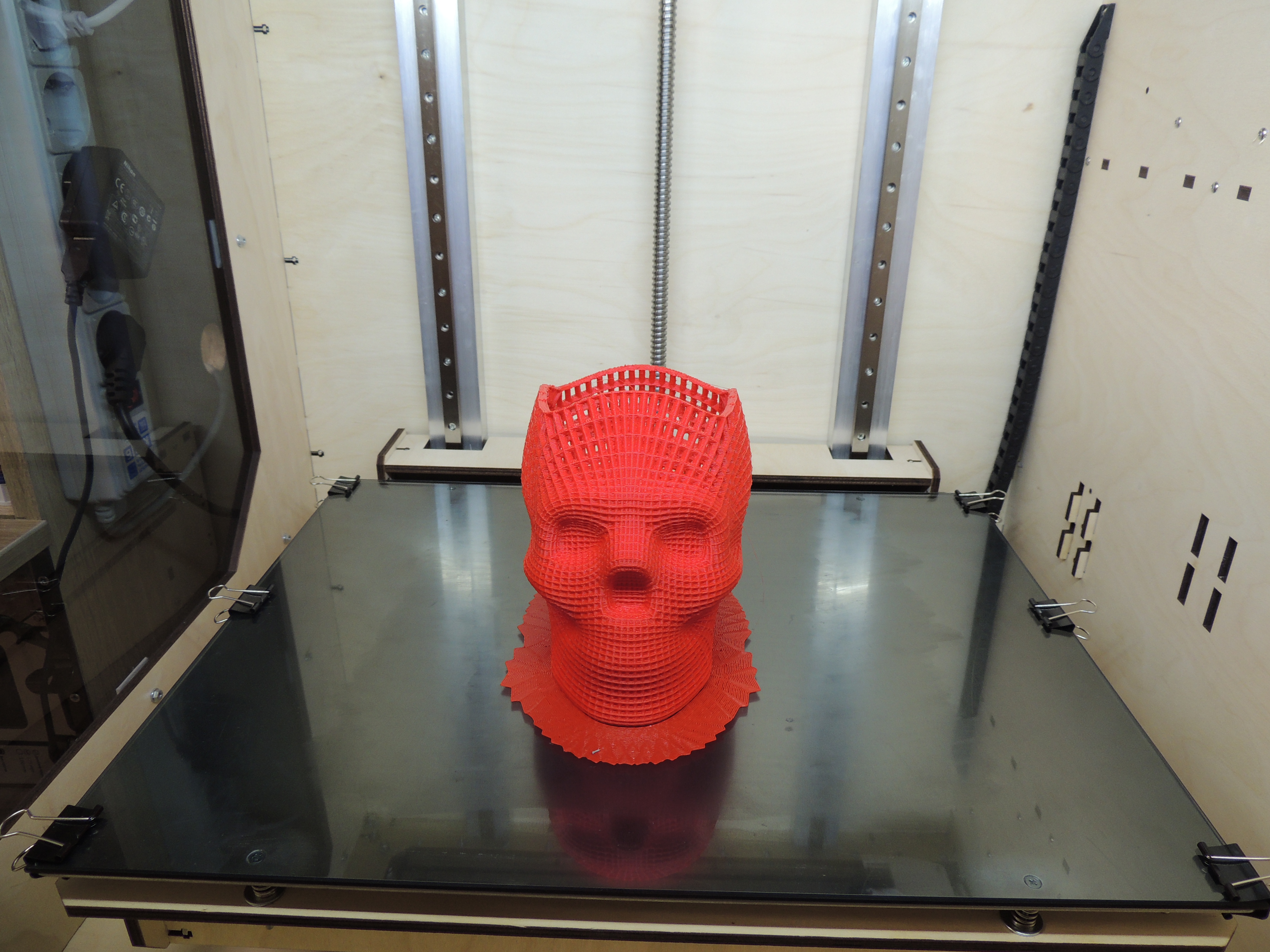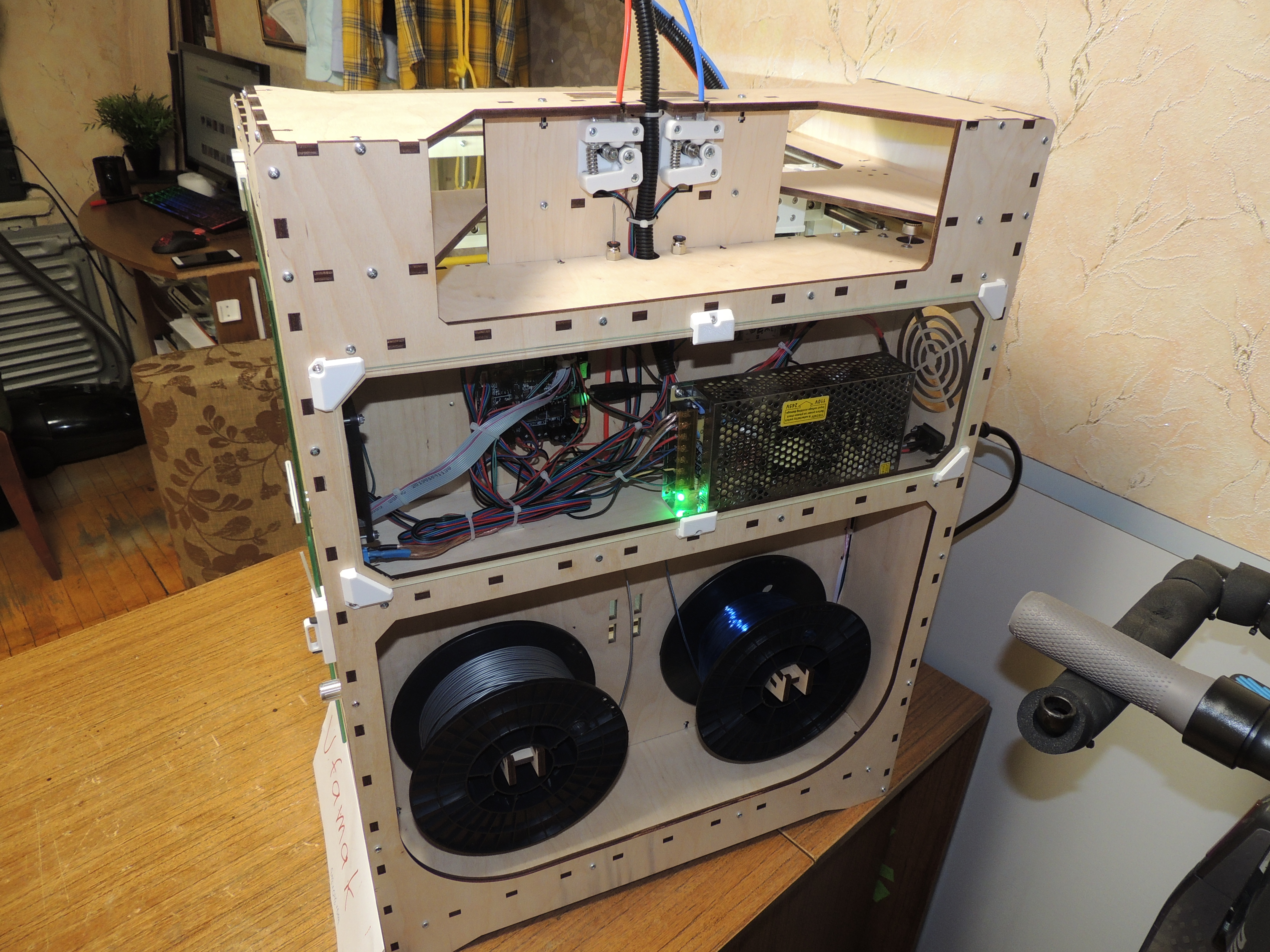здравствуйте все) давно не писал. широкоформатные принтеры множат ряды) последнее творение - на электронике Lerdge K и с дополнительным обогревом рабочего объема + колпак из акрилового стекла для поддержания постоянной температуры. с обогревом было "сломано много копий", а именно источники и принцип нагрева. были перепробованы и галогенные лампы накаливания на 2кВт, и галогеновые источники нагрева аэрогрилей на 0,5кВт, и элементы нагрева от термофенов, и просто ТЭНы на 1кВт. все упиралось в пожаробезопасность для фанерного корпуса и электробезопасность для пользователя. компромисс был выбран - та же силиконовая грелка что используется для рабочего стола (сама грелка расположена между двумя алюминиевыми 2мм пластинами и 10мм слоем базальтовой теплоизоляции, вся конструкция отделена от принтера также 10мм базальтовой изоляцией). думаю что получилось и пожаро и электробезопасно. за нагревом следит отдельный контролер STC-1000 (на Марлин 2.0 в принципе можно повесить и на саму плату посредством реле, на Лердже никак). это для любителей АБС. мне как любителю ПЭТГ достаточно и колпака (и то чтоб пыль не собирал))) за сим дальнейшие улучшения данной платформы считаю излишними (их фактически нет))) и перехожу очень плавно к новому проекту - Принтер с ОООчень большой областью печати (правда низкорослой) для рекламщикоффф. велком в новую ветку. напоследок фото парочки последних Широкоформатников.