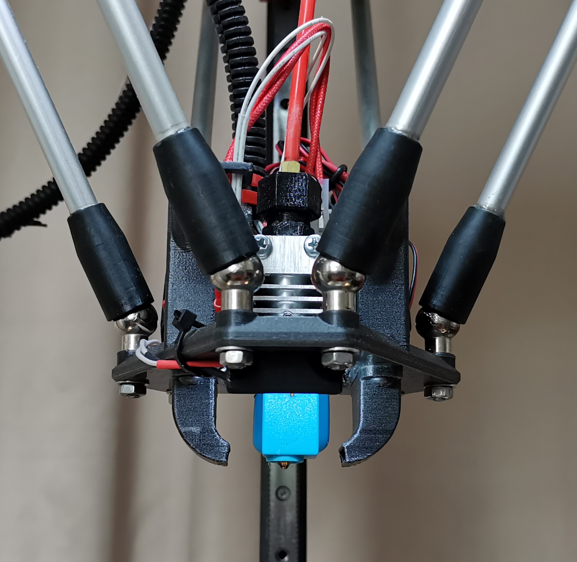 Наконечники тяг напечатал на фотополимернике из xABS от Хардлайт (ради эксперимента) - полгода полет нормальный. При серьезных столкновениях эффектор отстегивается частично (случилось пару-тройку раз), но никаких серьезных последствий не происходит - только кучка спагетти. Можно было бы пружинки приколхозить, но меня и так не сильно напрягает.