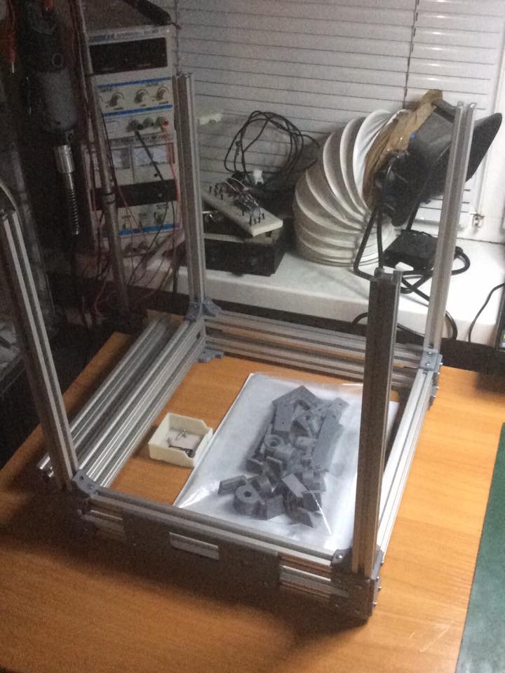 Решил я сделать второй принтер, так как к prusa i3 у меня возникли притензии по качеству работы и ее точности в печати. Хоть и вложил в нее не мало сил и финансов. По ней был сделан корпус из дсп, рама принтера сделана из металла, поставлены пластиковые подшипники что значительно снизило шум, разнесены два блока питания на отдельное питание стола, подключена малина для удаленного управления, подключена веб камера, все подключено через твердотельные реле и много другое.