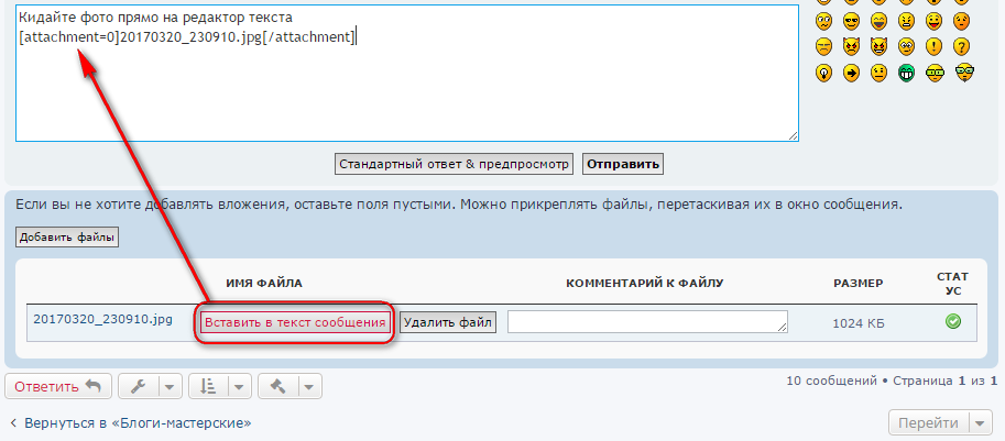 Кидайте фото прямо на редактор текста. И вставляйте как на картинке.