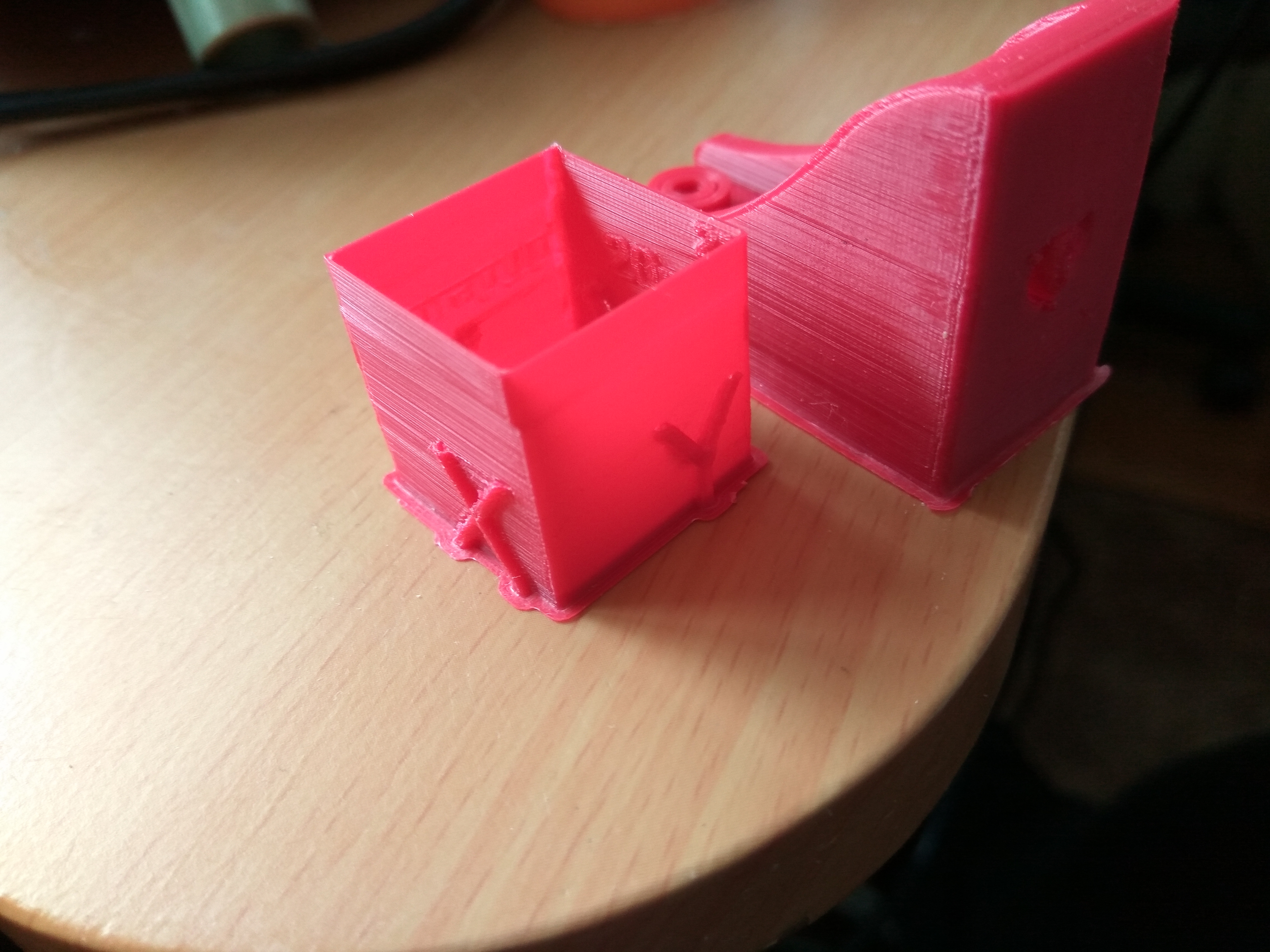 Чтобы и детали распечатать и проверить свои идеи добавил к деталям тестовый кубик в один слой. Суть идеи (борьба с полосатостью): если полосатость вызвана неточным перемещением по оси Z из-за винта или направляющих, то полосы будут на одном уровне как на деталях так и на кубике. Если же полосы на деталях появляются по другим причинам, например из-за того на сколько равномерно подается пластик - то полосы будут уникальны для каждой детали а тестовый кубик будет по гладкости стенки - лучше всех. Так же проверяю на сколько точно после всех движений сопло возвращается и печатает очередной слой тестового кубика, если после всех движений накапливается погрешность, то на тестовом кубике будут полосы. Для сравнения так же распечатаю один только тестовый кубик. Таким образом в конце печати по результатам круг подозреваемых виновных в полосатости распечаток сузится.