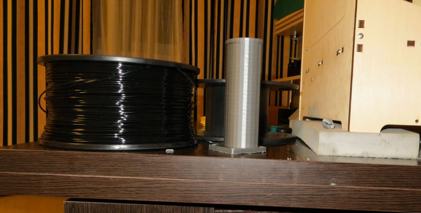 Хрень :D Я себе похожую конструкцию наваял, только попроще и технологичней(кстати тоже для ДНСовского АБС). Крутилась катушка на ней волшебно... Слишком. При рывке экструдером катушка бодро проворачивается на пол оборота со всеми вытекающими... Или еще больше усложнять конструкцию системой подтормаживания, или отмаштабировать стандартную держалку. Я выбрал второй вариант:)
