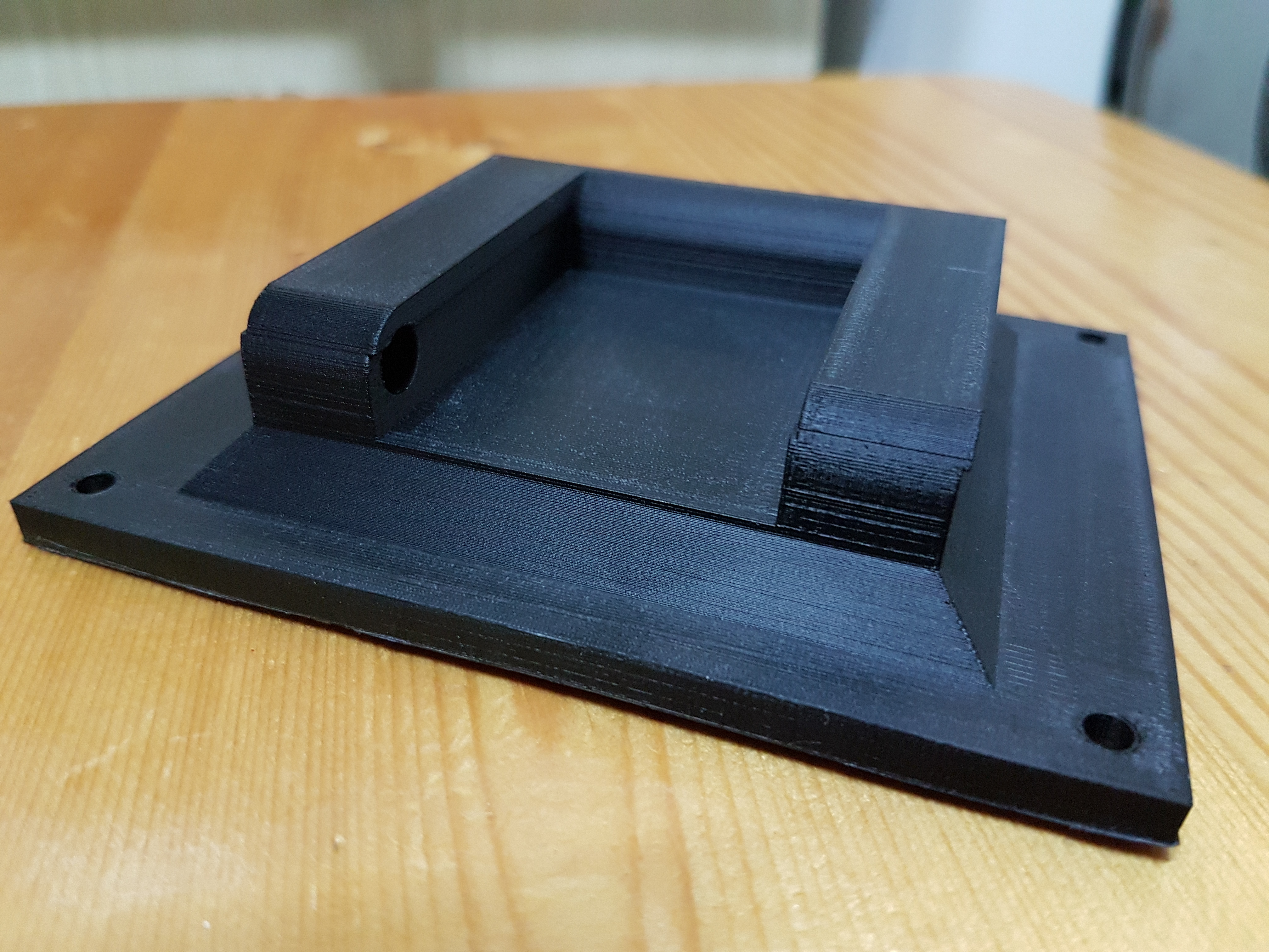 Из первого опыта, Abs черный fdplast, настройки такие же как в начале темы. Обдув включен. Оцените пожалуста, что изменить надо по качеству? Из-за чего сдвиг в районе отверстий мог произойти? Как можно бороться трещинами , кроме отключения обдува и возможно обдув отключить уже во время печати?