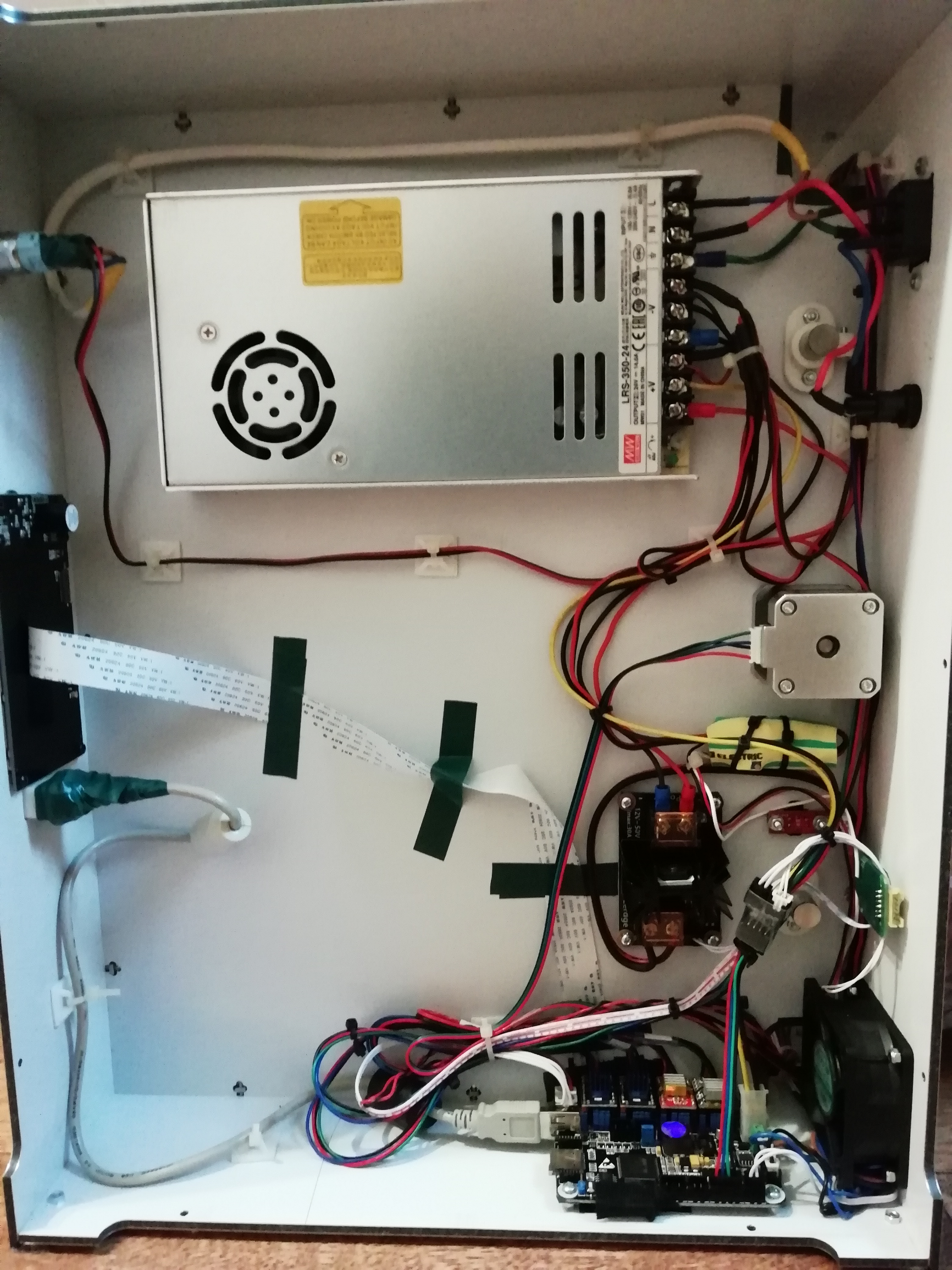 Если крышку сильно внутрь не вдавливать, то она установится вплотную к подогнутому шлейфу. При желании можно дремелем удалить один слой алюминия и пластик на дибонде напротив шлейфа. А лучше дно принтера вообще не устанавливать, потому что это лишняя деталь по-сути.
