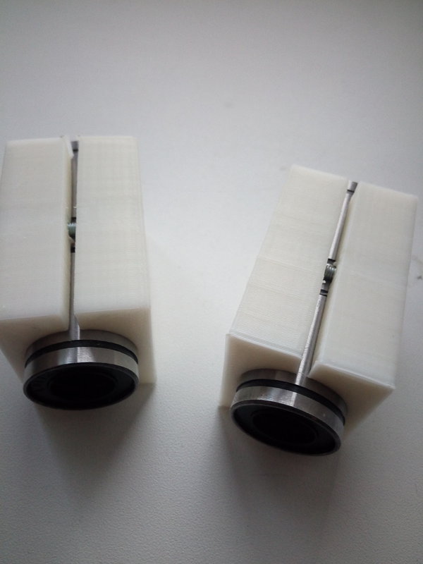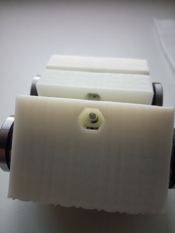 Можно раздвинуть подшипники и завинтить гайку, можно и так завинтить, а можно вообще не ставить эти винты, только заклеить подшипники со вставленными в них валами (где-то тут недавно в который раз обсуждали http://3deshnik.ru/forum/viewtopic.php? ... 2655#p8795 ). Я например, сначала винты ставлю, не затягивая, потом подшипники до соприкосновения с винтом. Короче, вариантов масса. Главное - чтобы при сборке кровати подшипники и торцы пластиковых блоков были приклеены к панелям стола.