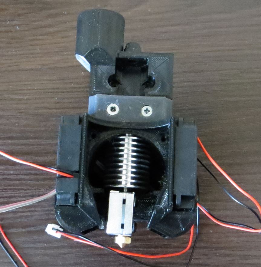 есть пара недочётов, но исправлены при помощи напильника - пролетел на 3 мм с нижней перемычкой , которая отделяла канал воздушного потока радиатора от камеры нагревательного блока. И пришлось выкусить эту перемычку. Но и без неё всё очень крепко. Ну и отверстия надо на 0,5 мм увеличить - на этой детали я разверткой их развернул. На модели исправил уже.