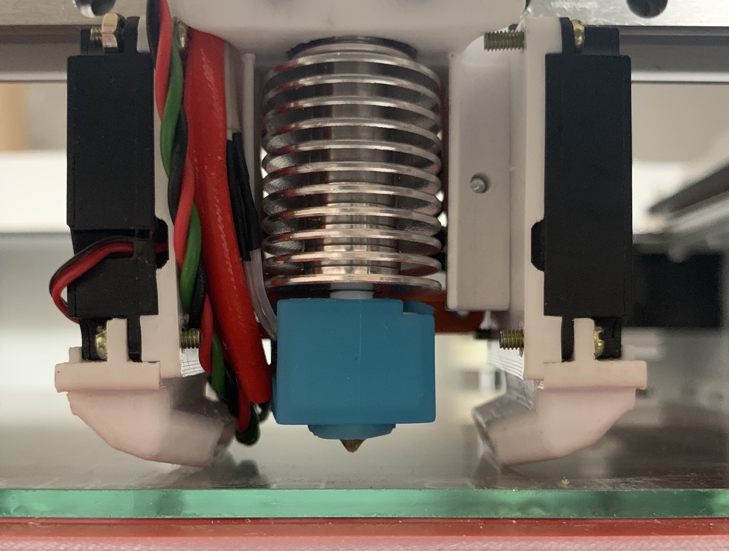 С обдувом теперь другая проблема. Сопла вентиляторов ниже сопла хотенда миллиметра на три. Нужно перемоделировать, но я не хочу разбираться в симуляторе потоков. А так не знаю насколько правильно получится.