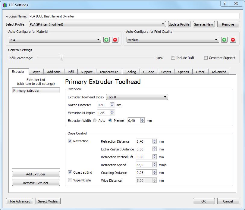 Да и с подборами тоже перебор. У меня в Куре по одному профилю для АБС, ПЛА и ПЕТ-Г сохранено, отличаются они в основном только температурами. Пластик при этом тыкаю любой и просто печатаю, без всяких подборов.