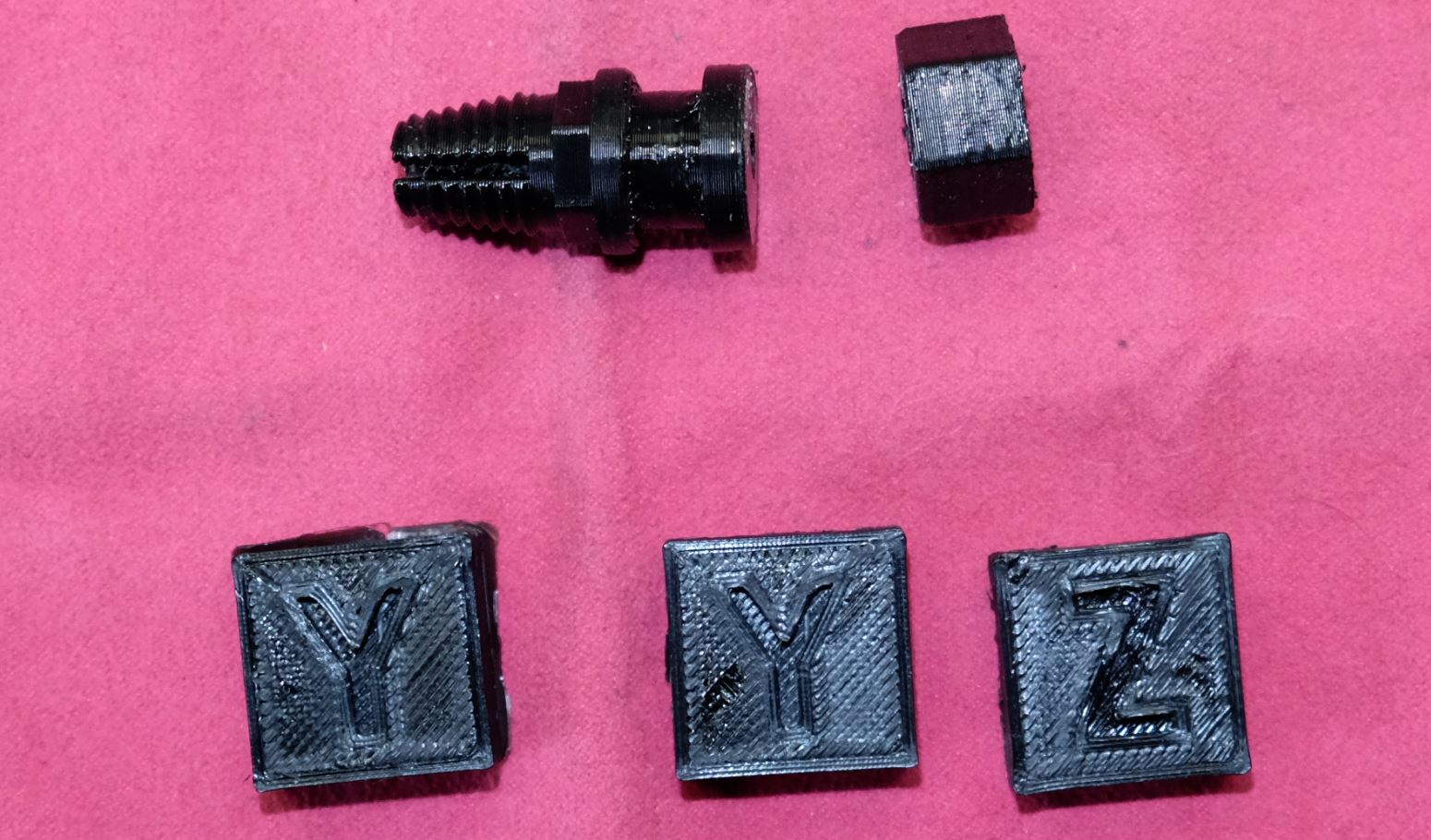 Вот кубики отстройки с разными параметрами температуры 236,237,238 и фото фитинга. Достал Фотоаппарат ФУДЖИ, чтоб нормальную фотку сделать . Фитинг нормально зажимает боуден трубку - не ломается и фиксирует трубкубез проскальзывания трубки и без пережима прутка в трубке.