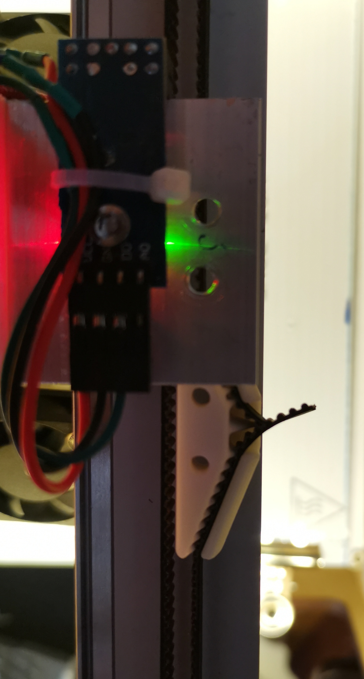 Держатель неприкрученный на балку положил, ремень по шкивам уложил, один натяжной ролик ослабил, хвосты спокойно в держатель вставил, обрезал лишнее, ролик затянул, держатель к уголку прикрутил.