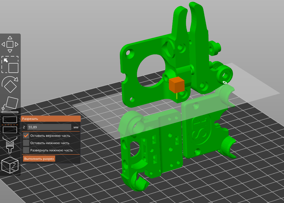 разрезание сборки из нескольких деталей (Андрей любит выкладывать такие) для печати только одной из частей: