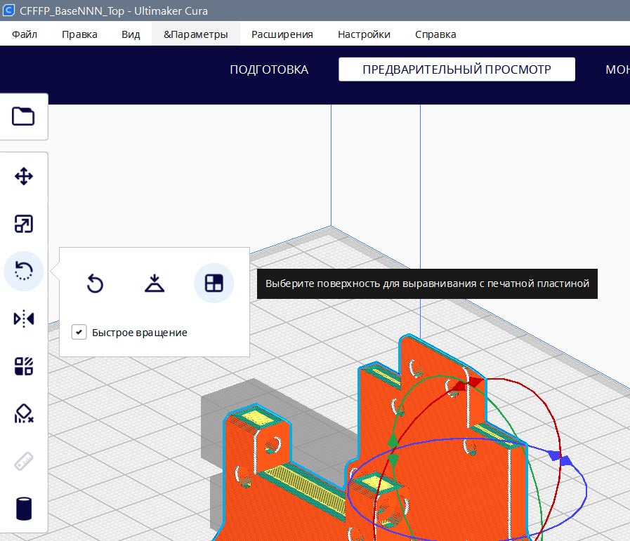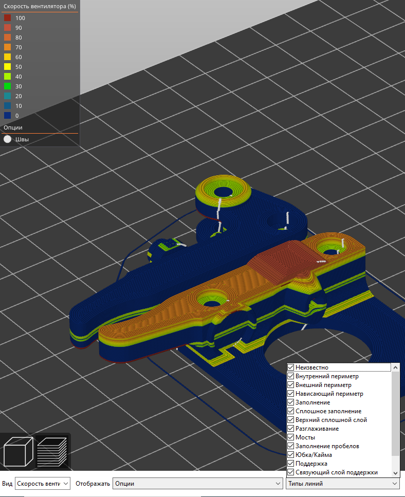3. Просмотр получившегося кода, например скорости вентилятора (вечно приходится подбирать баланс между спекаемостью АБС и его расплыванием) и местоположения швов: