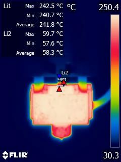 Тепловизор не очень информативен, визуально будет виден градиент, но он покажет только то что происходит снаружи. Вот москито, например: Оценить градиент можно по двум точкам: на уровне нижних ребер радиатора и чуть выше (вставив датчик температуры вместо прутка). Я выше приводил видео где измеряли ровно это. Все тестировалось на E3D-v6, разница только в термобарьерах: