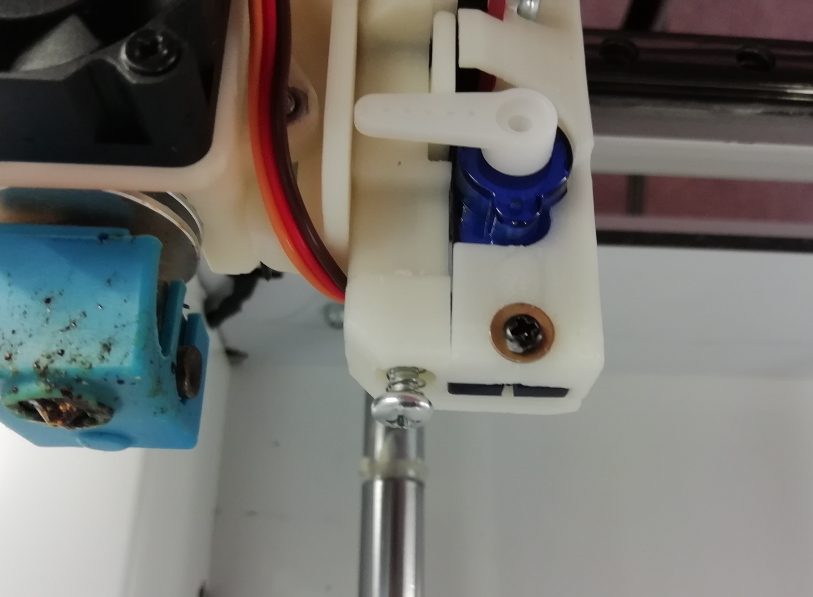 В запасах были все компоненты (оптический концевик, серво машинка). Только крепление пришлось моделировать (на место крепления вентилятора).