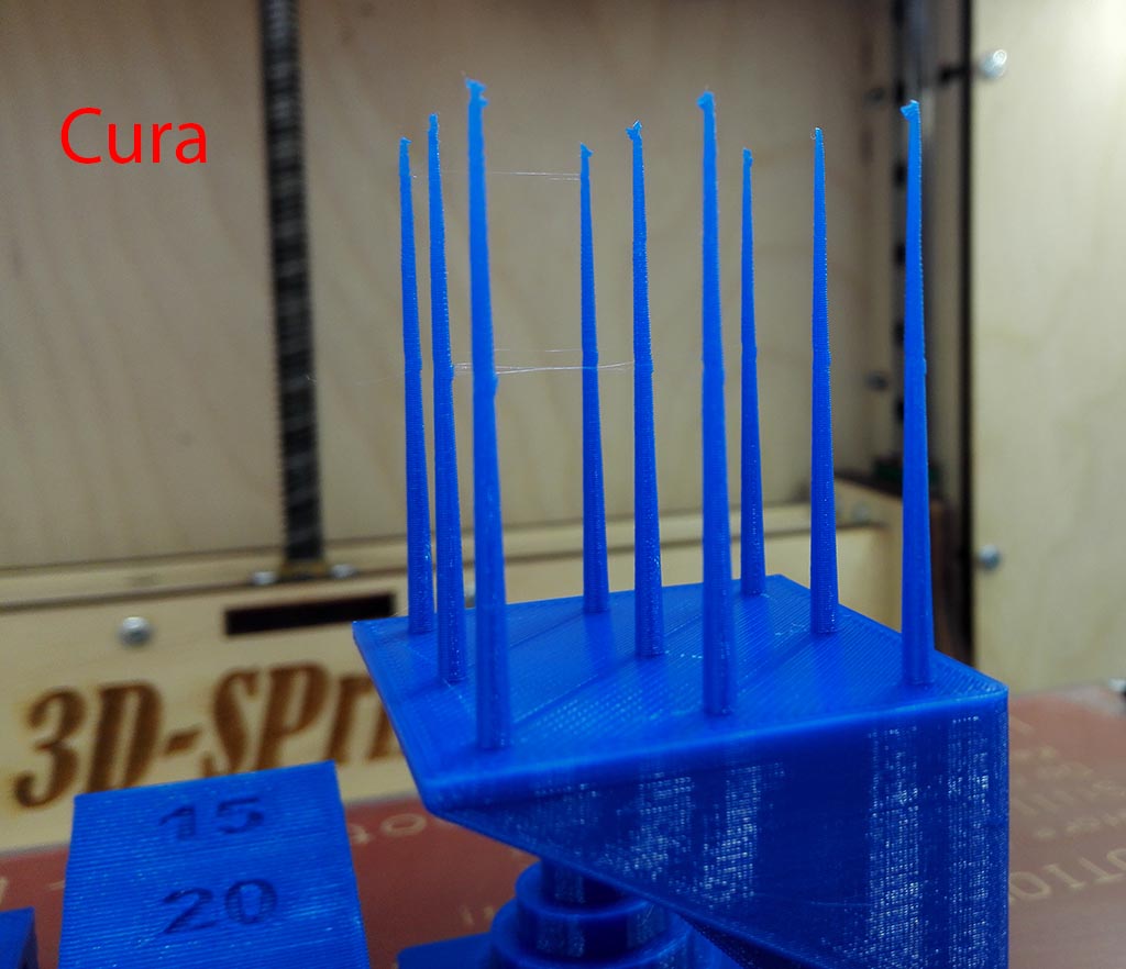 По результатам подачей остался доволен. Был удивлен, что при одинаковых настройках длины и скорости ретракта, антенки в Симпли все в паутине, а в Куре практически нет... Сомневался в дефектах в середине антенн - выяснил, что в этом месте слайсеры изменяли тип заполнения. В общем, Кура в данном тесте оказалась лучше. Симпли еще с маленьким мостиком накосячил...